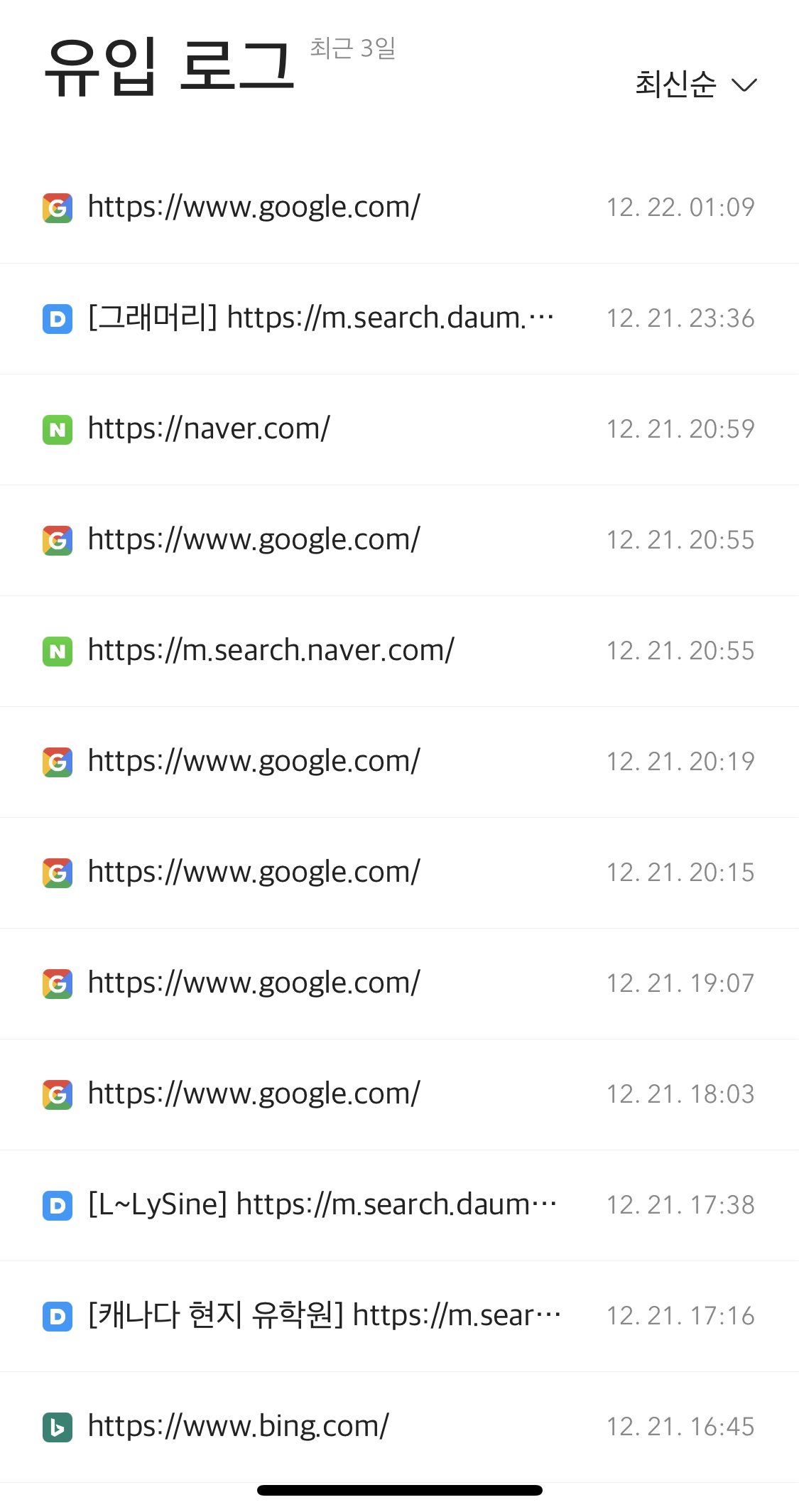 방금 열어본 최근 3일 유입 로그 입니다. 초반에는 다음으로 유입되는 양만 압도적으로 많았는데, 이제는 구글에서도 정말 많이 유입이 되고 네이버에서도 들어오고 있어요. (저의 또 다른 블로그 devleeschoice는 아직까지 다음 유입이 대부분입니다.)