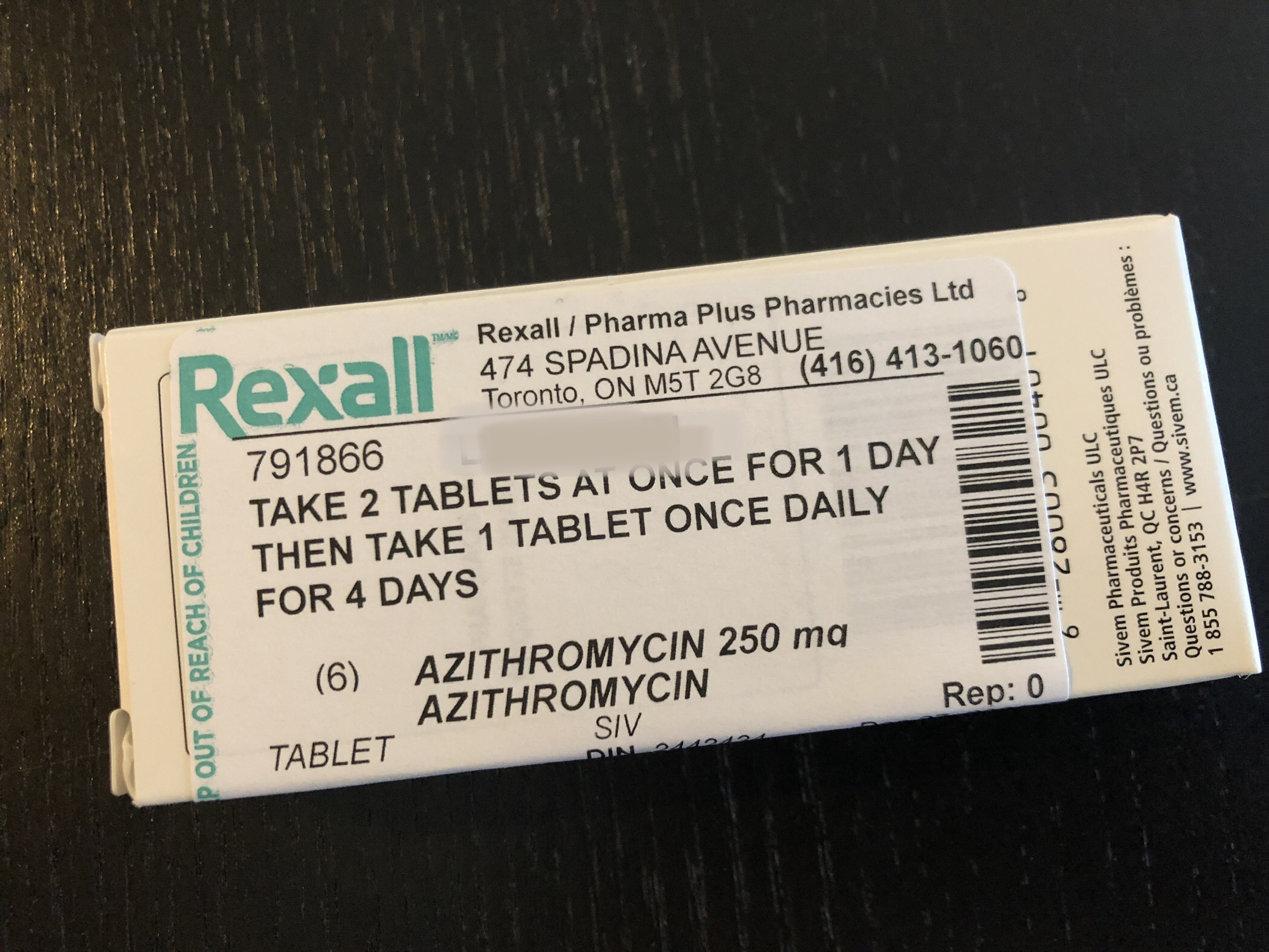 제가 이번에 처방받아온 Azithromycin 아지트로마이신은 총 6알짜리로, 약사가 알려준대로 첫날에는 2알을 한번에, 둘째날부터 4일간은 하루 1알씩 복용했습니다. 작년에 아팠을 때는 총 일주일간 복용을 했어요. 항생제는 복용 도중 증상이 호전되더라도 꼭 처방받은 양을 모두 끝까지 먹지 않으면 100% 치료가 되지 않고 해당 세균이 몸에 남아 언젠가 또 증상이 나타나게 만든다고 해요.