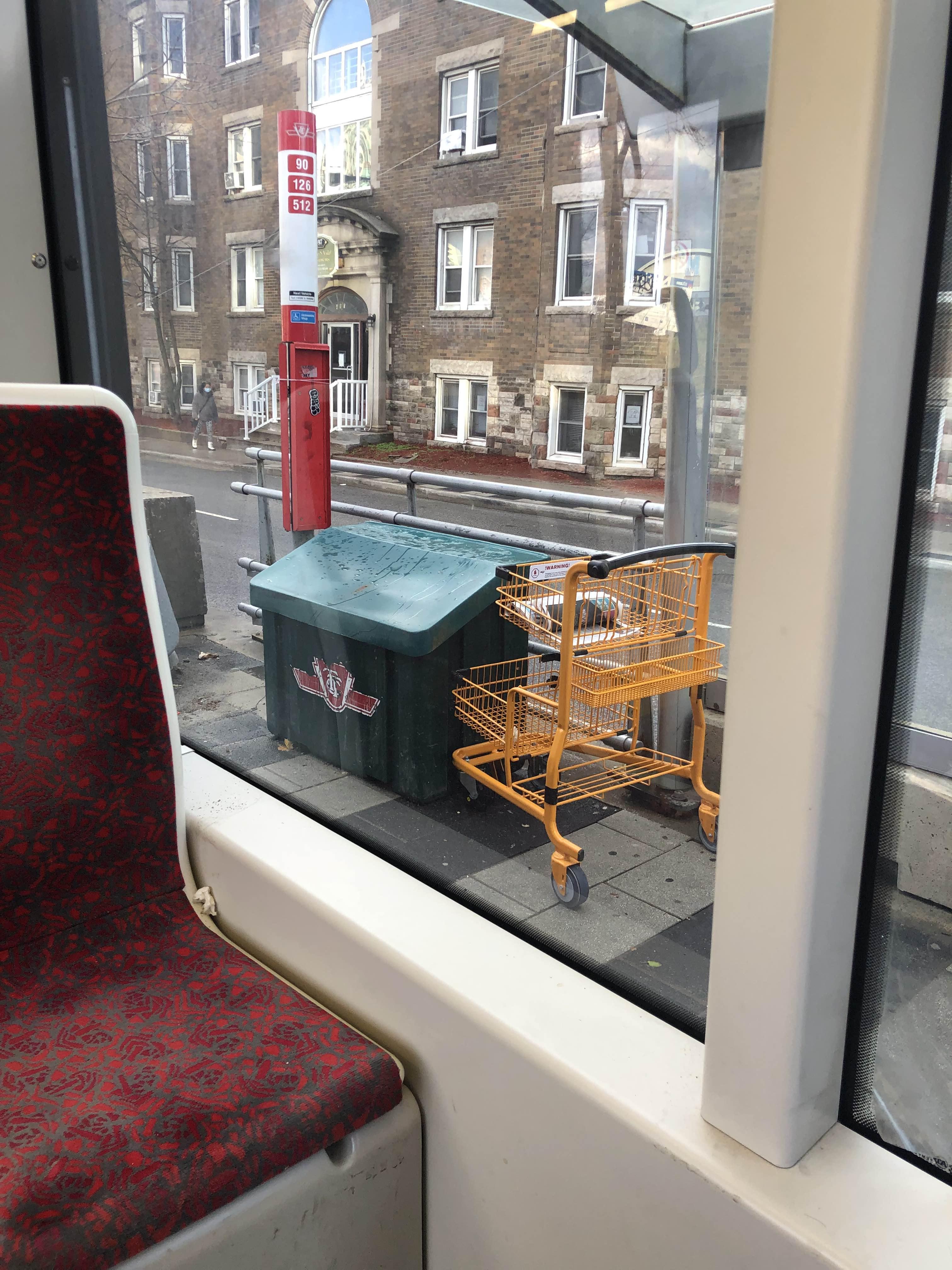 어느날 스트릿카 정류장에서 마주한 낯익은 쇼핑 카트. 누가 도대체 무슨 정신으로 여기까지 끌고 온 걸까요?