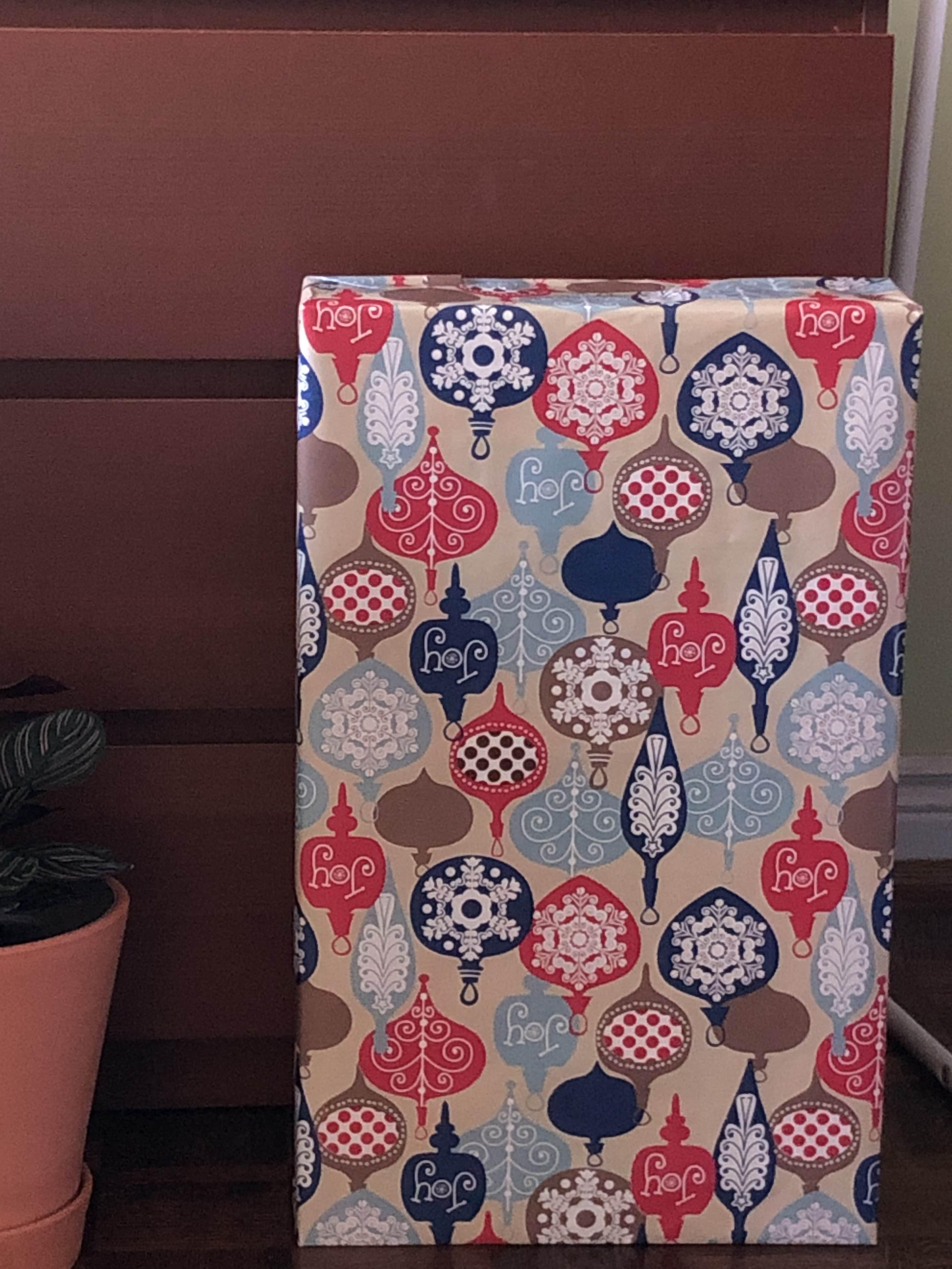 심통이 나있던 터라 크리스마스 선물따위 받을 기분이 아니라구요... 이렇게 세워두고 침대에서 노려보다 결국 뜯어봤으나 맘에 안들어서 결국 산타님께 다시 반납하시라고 전해드림. 이 때 저는 다시 한번 깨달았어요. 필요없는 물건이 늘어가는 게 저한테는 스트레스라는 것... 크리스마스 선물 교환하는 것도 상대방을 위해서도 나를 위해서도 환경을 위해서도(?!) 하지 말아야겠다는 것. 이 선물 받고 돌려주고 나니 친구 L에게 줄 선물을 깔끔히 사지 말아야겠다는 결론도 났구요.