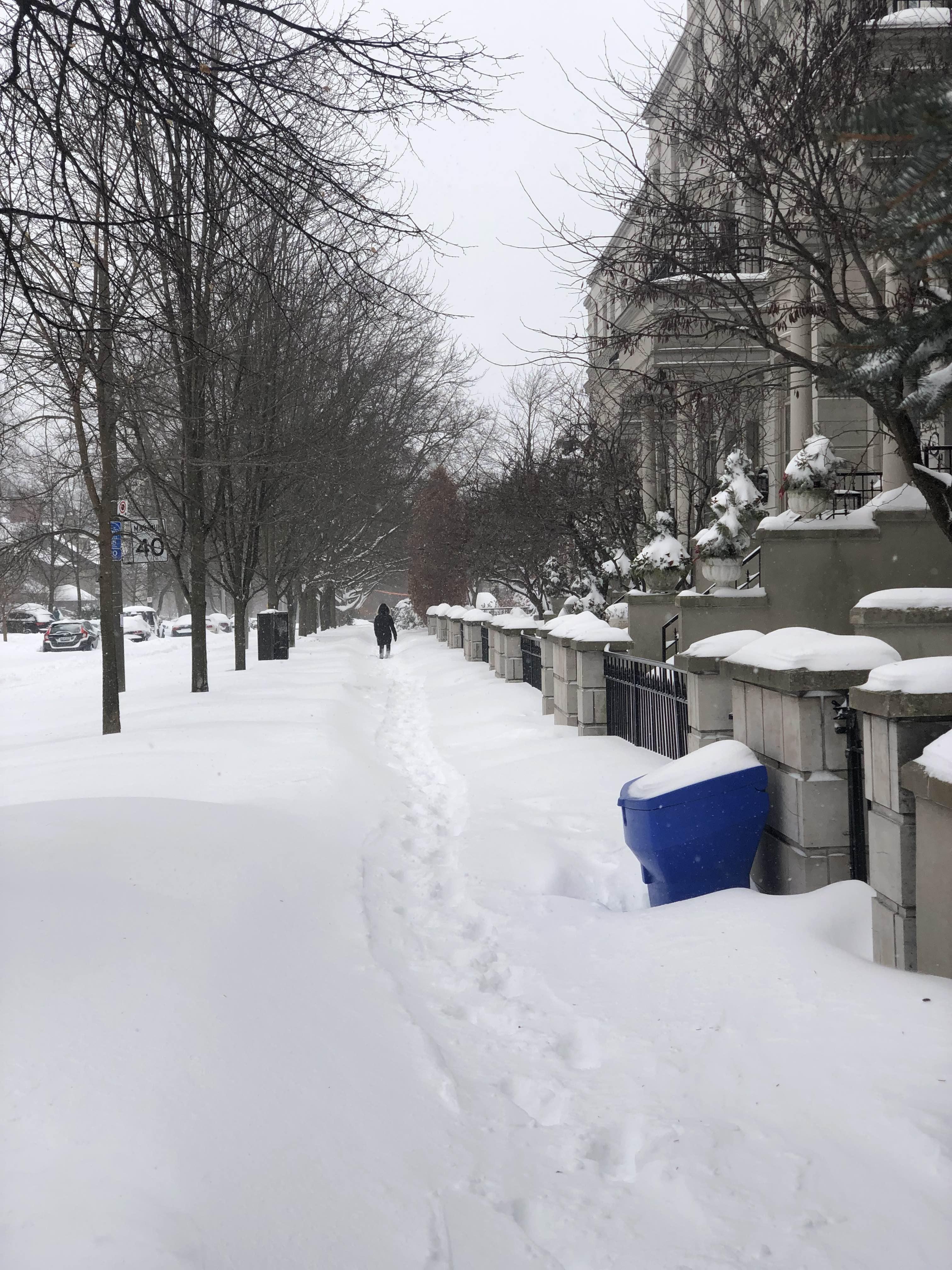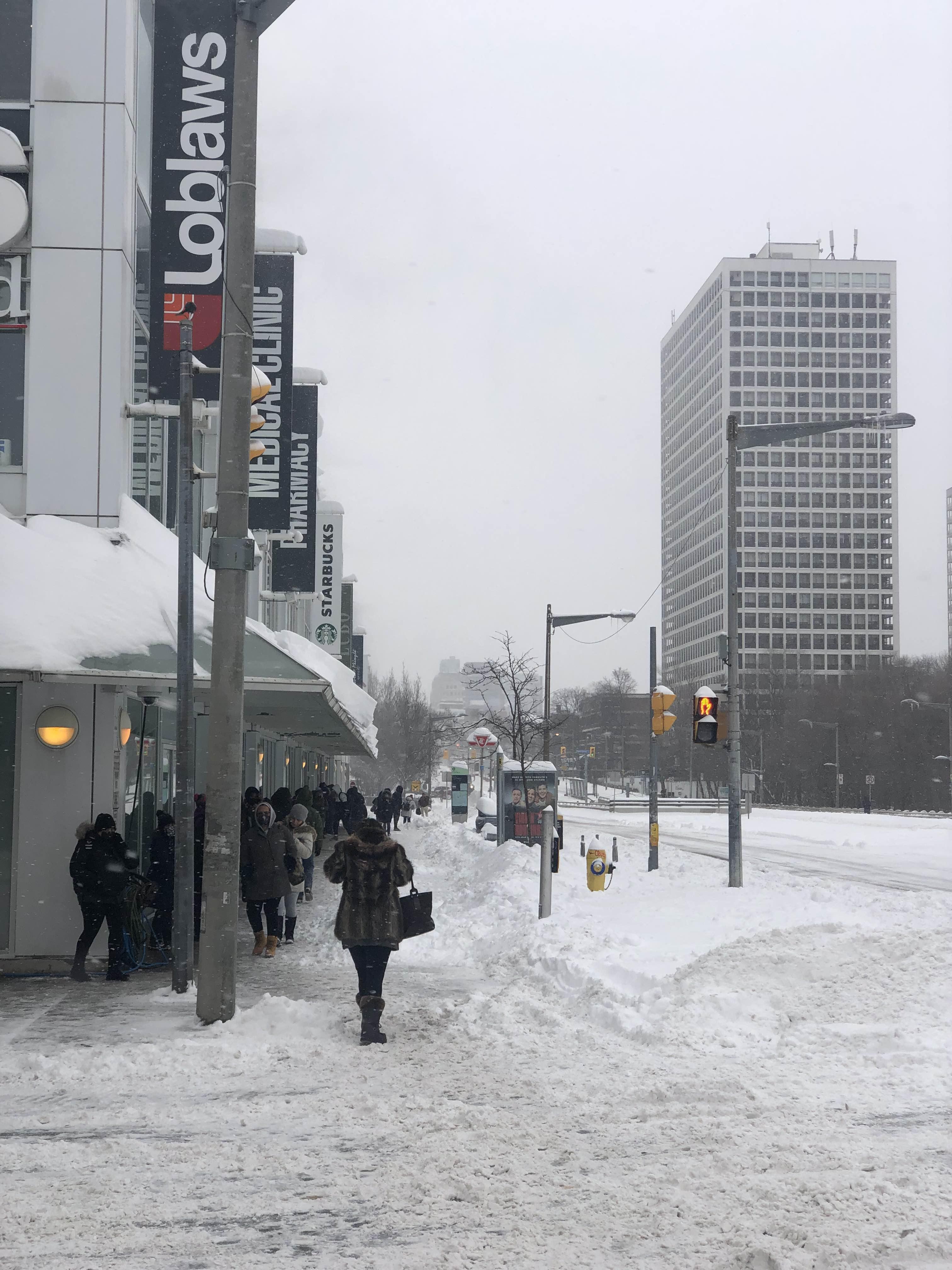학교도 이날은 온라인 수업으로 바뀌고, 거의 재택으로 바꼈을텐데도 그 와중에 일하러 가는 분들이 계시더라구요. 하지만 대중교통이 멈췄으니 하염없이 걸어서 출근하는 모습. 이런 큰 도로변도 제대로 안 치워져 있어서 겨울 부츠를 신은 저도 발이 쑥쑥 빠지는 게... 정말 걷기 힘들었습니다;;