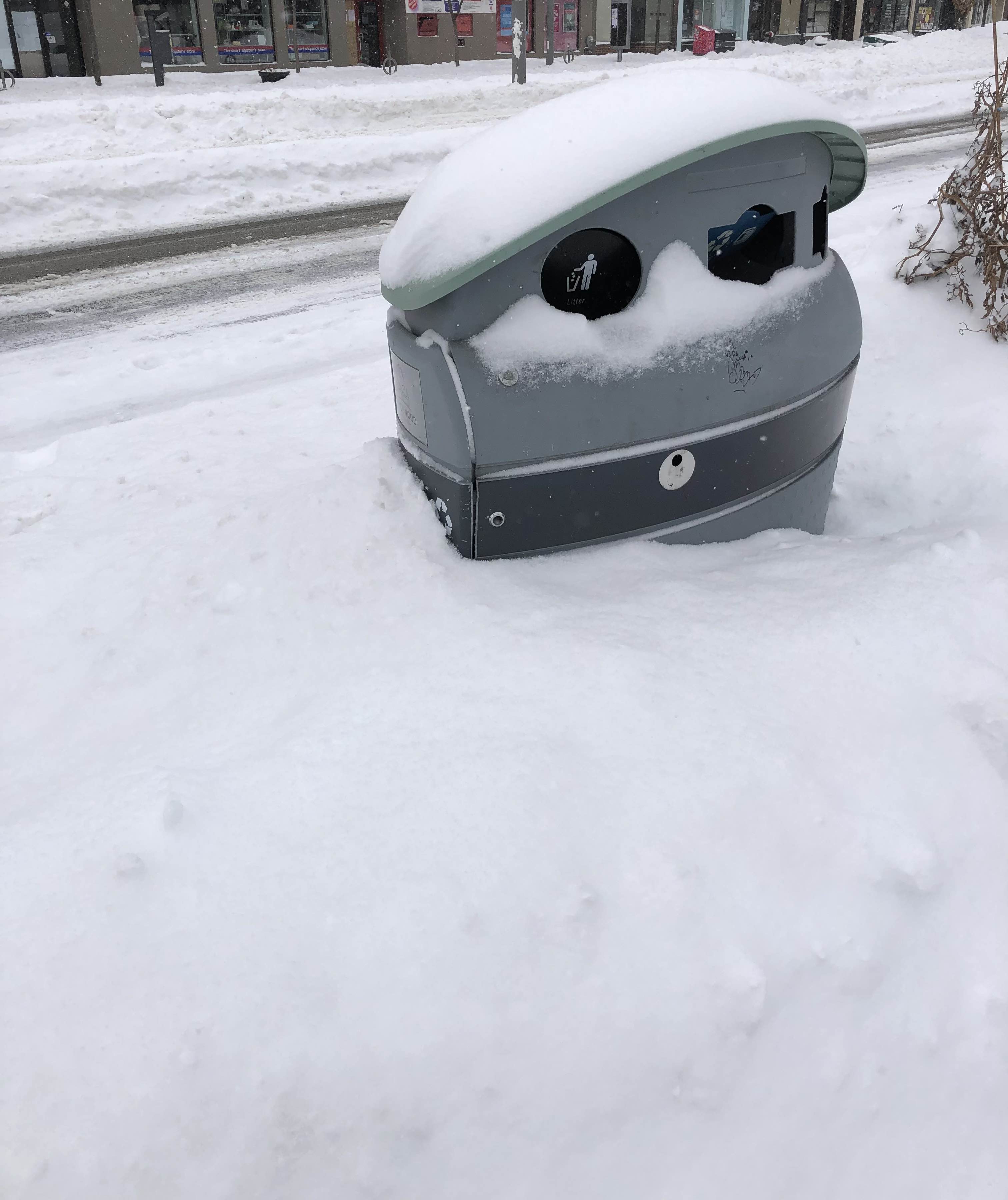 쓰레기통이 없었더라면 어디까지가 도로인지 구분이 안 갈 정도로 쌓였던 눈. 그래도 집으로 돌아오는 길은 눈이 조금은 더 치워져 있던 상태라 조금은 더 걷기 수월했네요.
