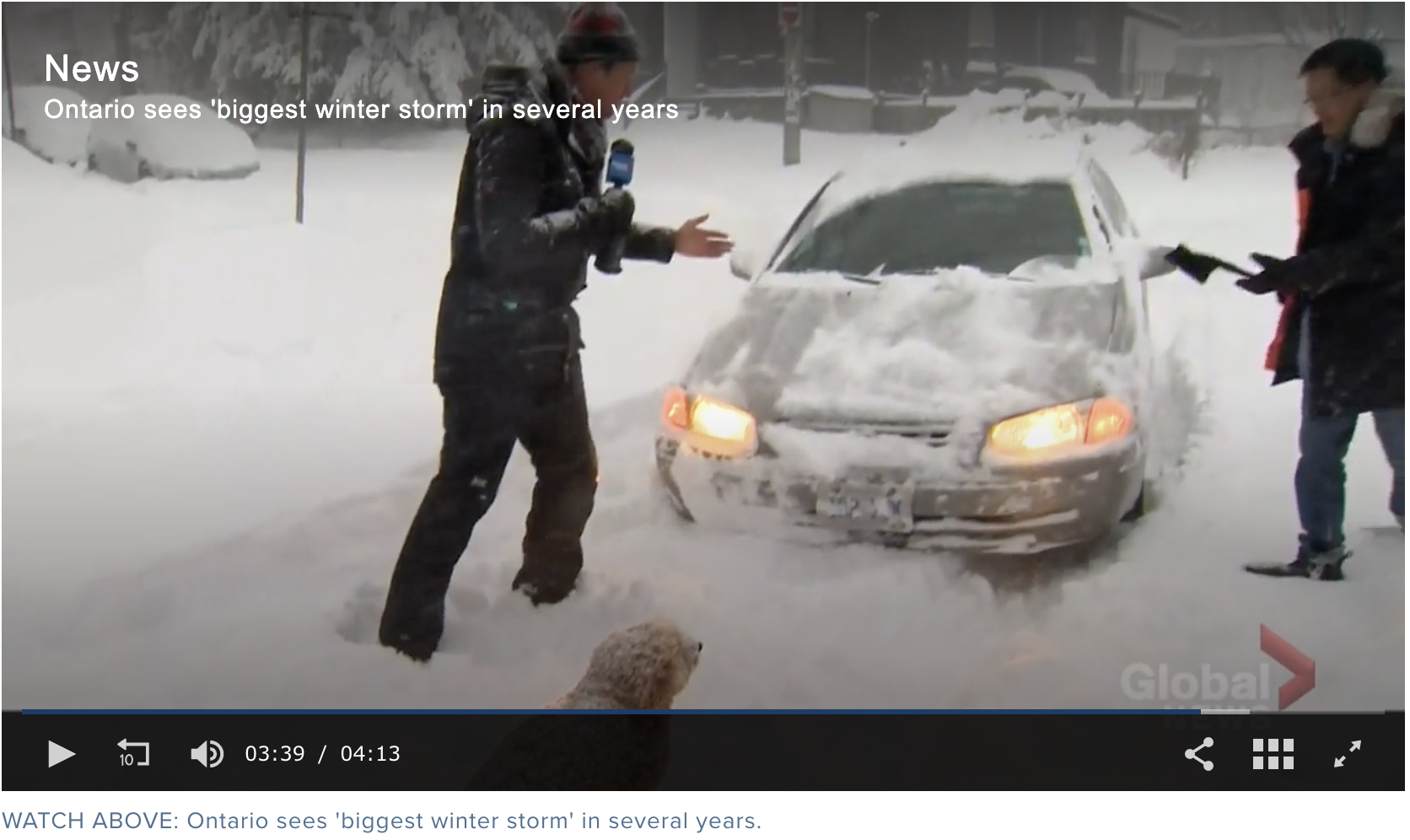 방송 도중 때마침 지나가던 주민 차가 눈위에서 움직이질 않아서 주민이 내려서 삽으로 직접 길을 정리하더니, 리포터랑 카메라맨이 도와줘야겠다며 방송이 끝났어요ㅎㅎㅎ 그 상황을 같이 지켜보고 있는 강아지ㅎㅎㅎㅎㅎㅎㅎㅎ