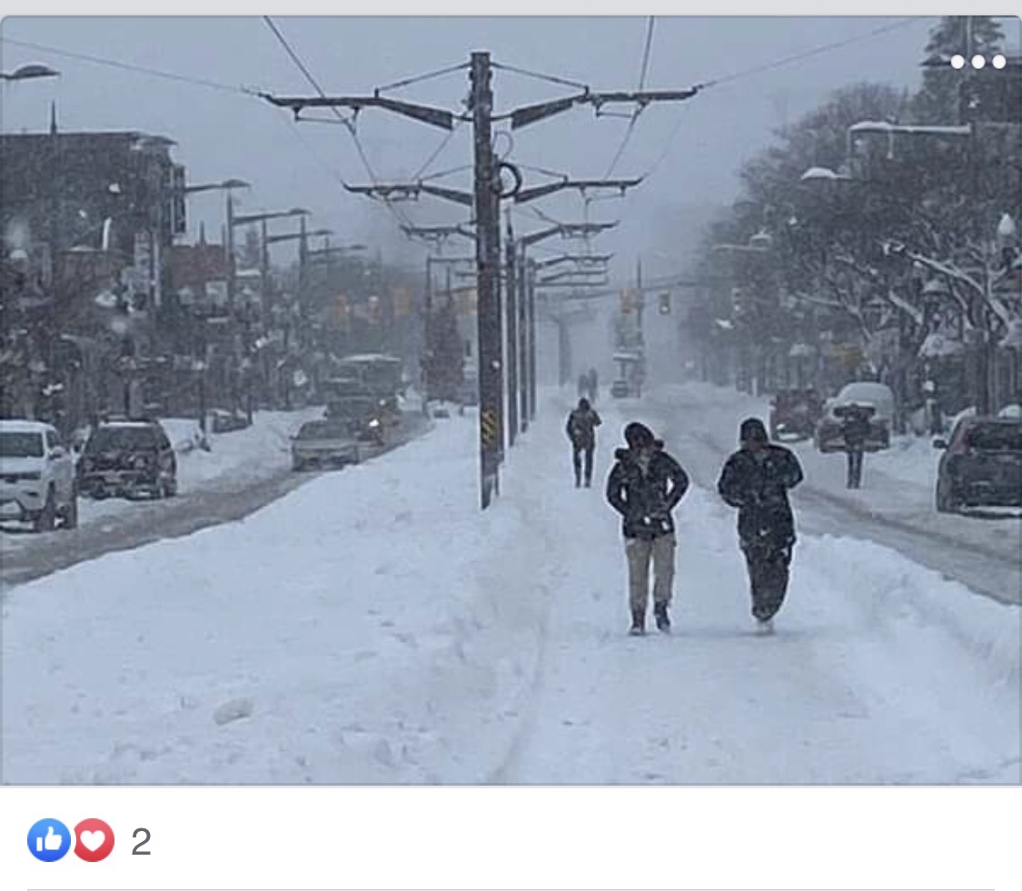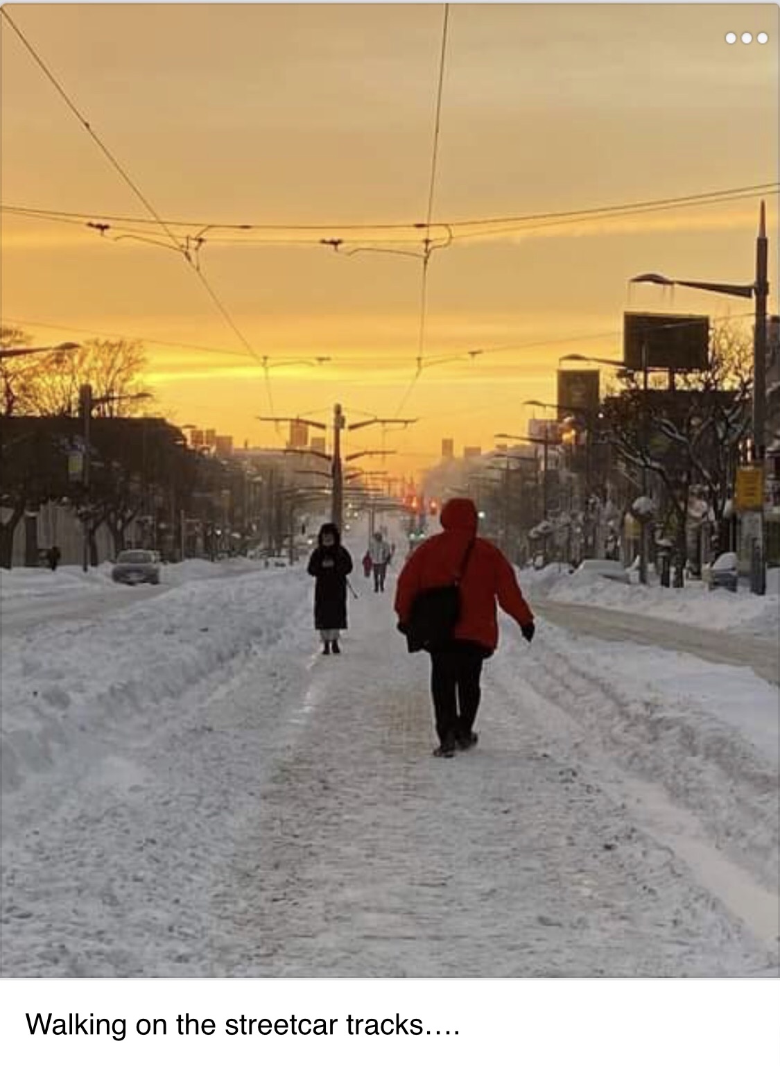 페이스북을 봤더니 저녁까지도 스트릿카가 운행이 되질 않아서 사람들이 그나마 걷기 편한 스트릿카 트랙 위로 걸어서 이동하고 있더라구요.