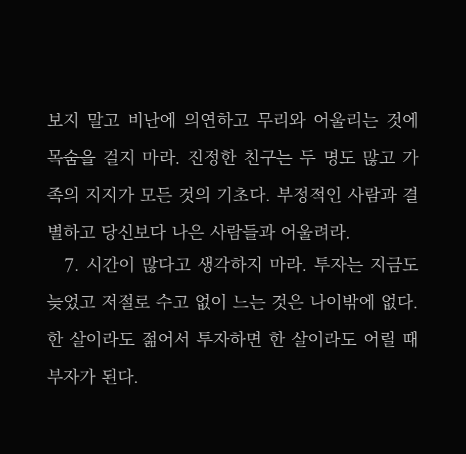 성공의 지름길! 빨리 돈을 모으는 법! 최상위 부자가 되는 법! 같은 이야기가 들어있을 거라고 생각하고 읽는 분들은 조금 실망하실지도 모르겠고, 어떤 태도와 마음가짐으로 세상을 살아가고 돈을 이해하면 좋을까에 대한 답을 원하시는 분들이라면 추천합니다. 저는 너무 잘 읽었어요!