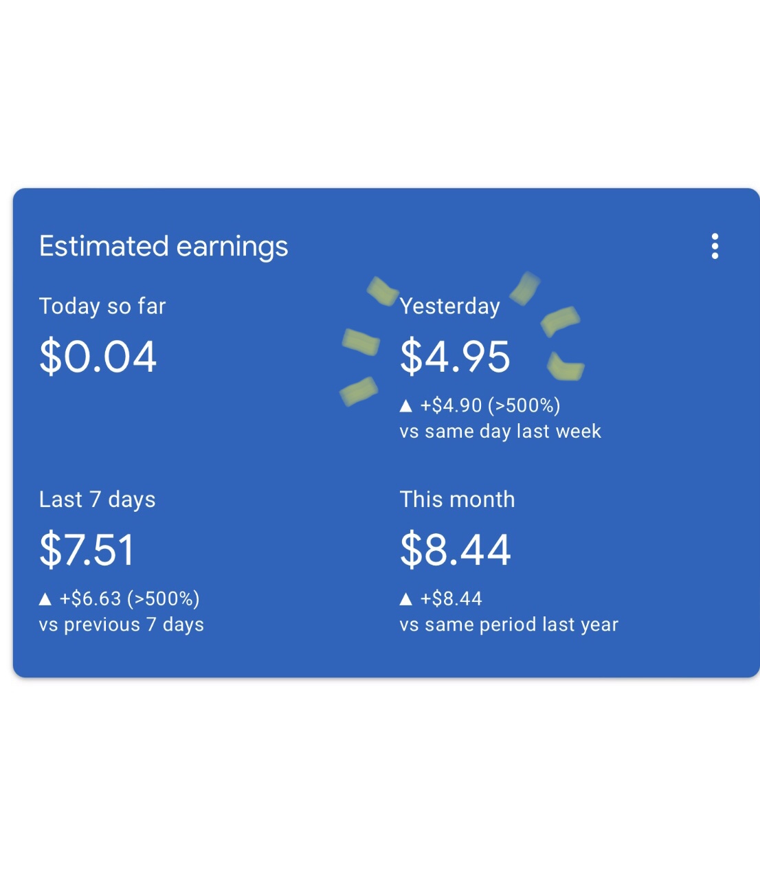 하루 $1 벌기도 쉽지 않은데 어느날 갑자기 $4.95 수익이 났더라구요!!! 운영 잘하시는 파워블로거분들에게는 정말 우스울 수익이겠지만, 저에게는 오오오 내 블로그도 희망이 보인다!!!!! 라는 힘을 실어준 엄청난 수익이었어요. 아무리 일 방문자수가 높다고 해도 정작 높은 수익을 불러오는 건 광고 클릭이 최고입니다. 뭐 아직까진 어떤 글에서 광고 클릭이 더 발생하는지 까지는 살펴보지도 않았고, 앞으로도 지금처럼 쓰고 싶은 글들만 쓸 예정이라 그냥 요령 없이 하던 대로 하려구요.