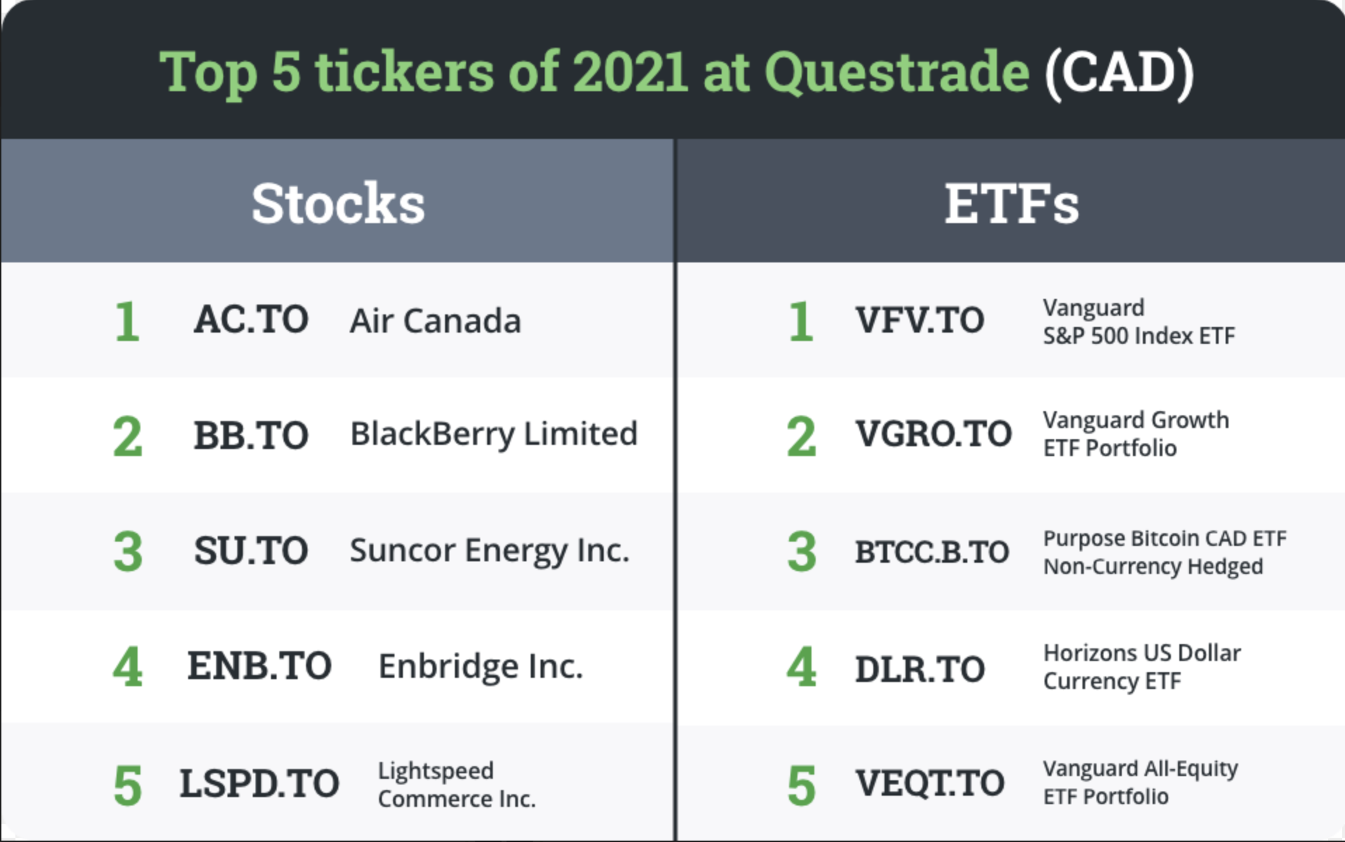 캐나다에서 2021년 인기 많았던 미국 ETF Top 5