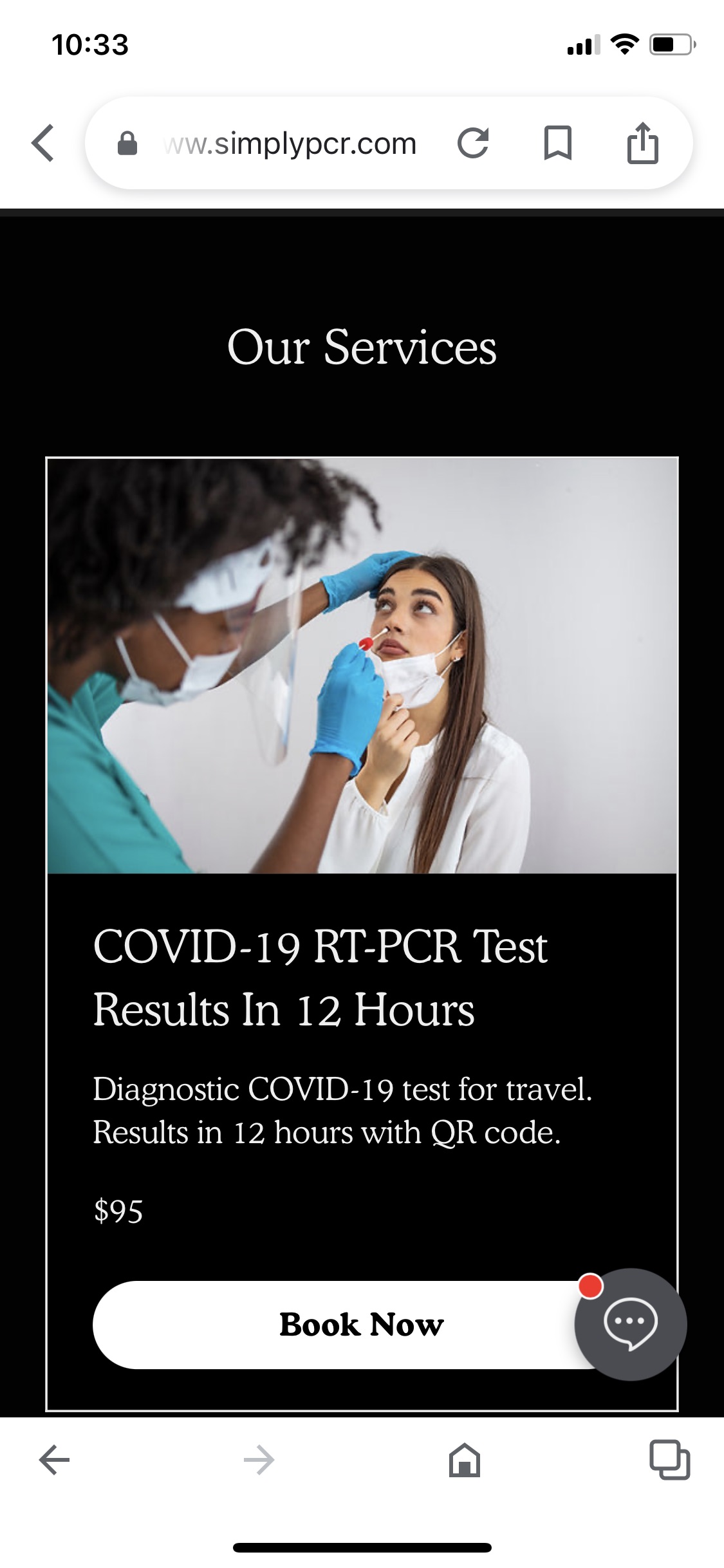 데브리입니다. 갑자기 한국행이 정해져서 저에게는 단 하루만이 남아있었고, 보통 48시간을 남겨두고 PCR 검사를 받는 분들은 괜찮겠지만, 저는 하루만에 꼭 결과가 나와야했던 상황이라 찾아보다 95불에 12시간안에 결과를 받을 수 있는 simply pcr이라는 곳을 찾아서 검사를 받았어요.