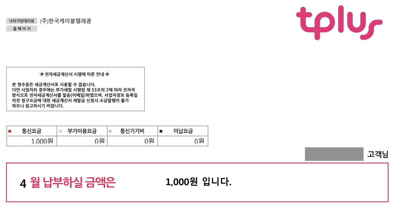 월정액 오천원 미만의 다른 요금제들도 많았는데, 그냥 제일 저렴하기도 하고 다른 해외 거주자들도 많이 사용하는 게 티플러스라 저두 여기에서 가입했어요. 매달 이메일로 명세서도 확인하실 수 있고, (저는 전혀 확인하지 않지만) 티플러스 홈페이지에도 가입하시면 이런저런 정보를 볼 수 있더라구요.