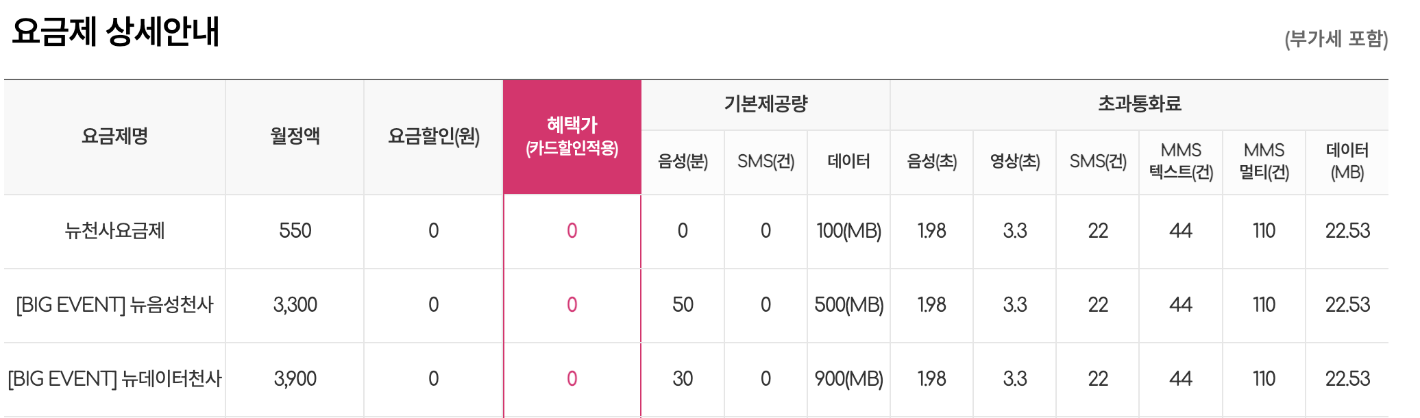 새로 가입하시는 분들은 뉴천사요금제로 가입하시면 되겠네요!