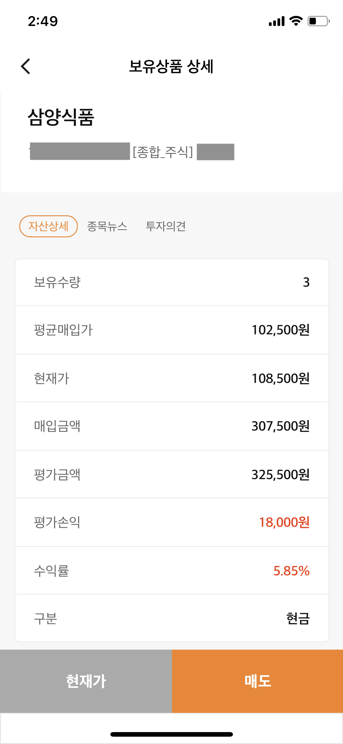 그래도 관련 기사나 다른 정보는 하나도 안 찾아보고 그냥 산건데, 사고보니 최근 삼양식품 분위기가 좋더라구요? 어제 19일 아침에 사고 오늘 하루만에 5% 이상의 수익률을 내서 기분이 좋습니다. 더 살껄 ㅠㅠ 삼성전자로 배당금 받아서 한국 주식계좌에 돈이 모이면 모아서 삼양식품 더 살까봐요 (어느 세월에?ㅎㅎㅎ).