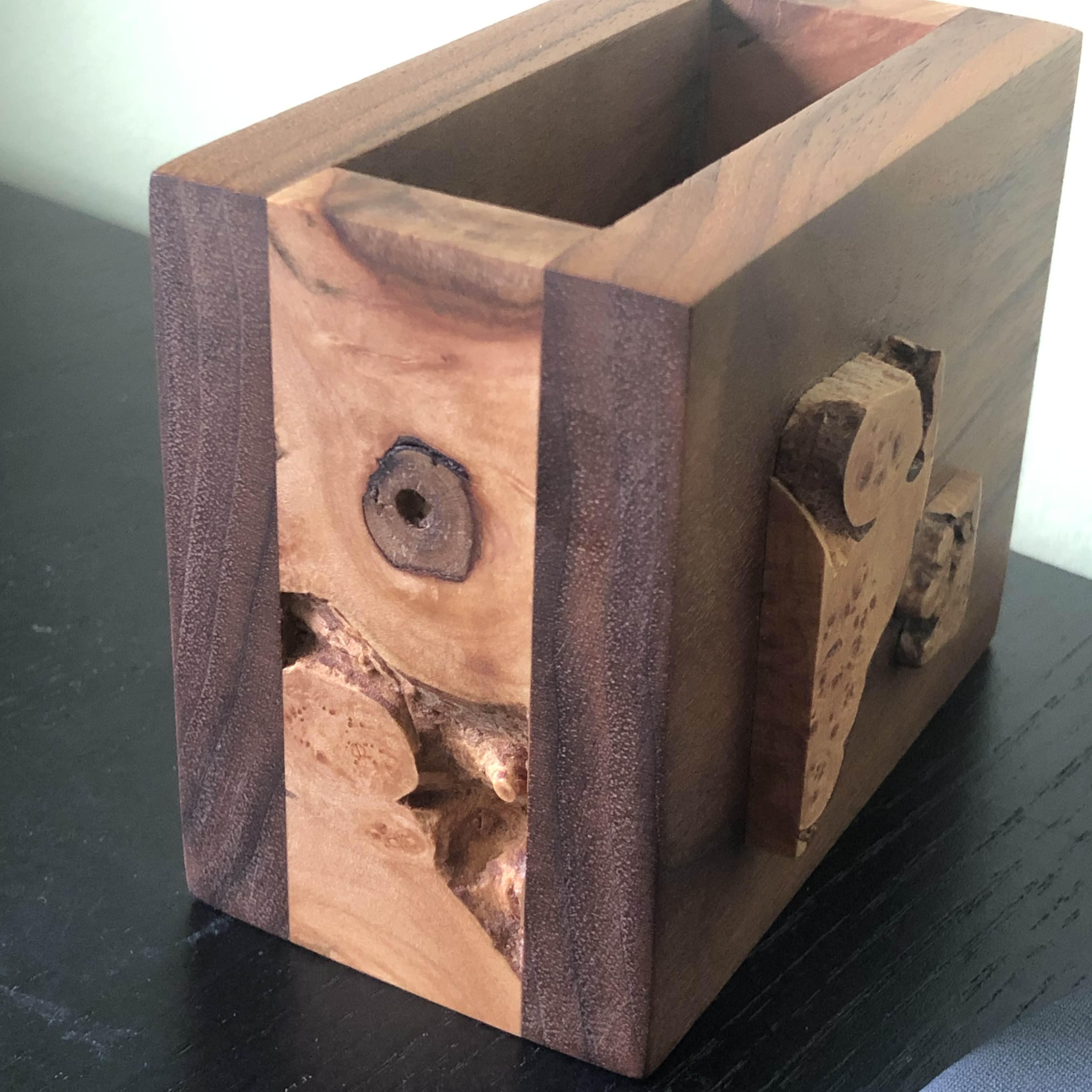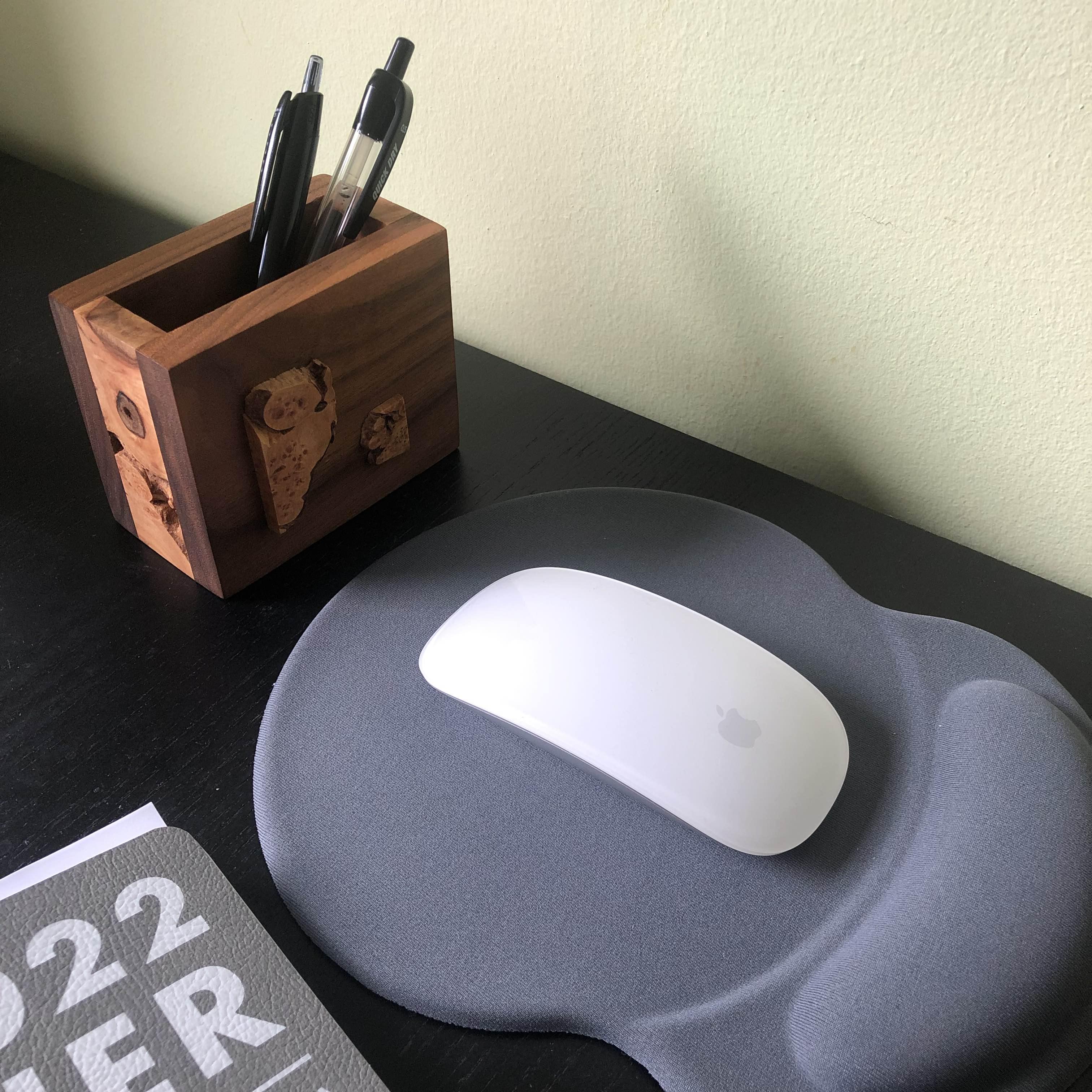사실 가구도 그렇고 뭐든 이런 나무 느낌이 그대로 드러난 소품을 좋아하는 편인데, 양 쪽 사이드에도 결이 그대로 드러난 이 작은 펜 꽂이가 그냥 너무 맘에 들더라구요. 첨엔 뜬금없이 이런걸 왜 사왔지? 라는 생각이었는데 보면 볼수록 예쁘고 오래 간직할 수 있는 선물인 것 같아서 너무 좋아요!