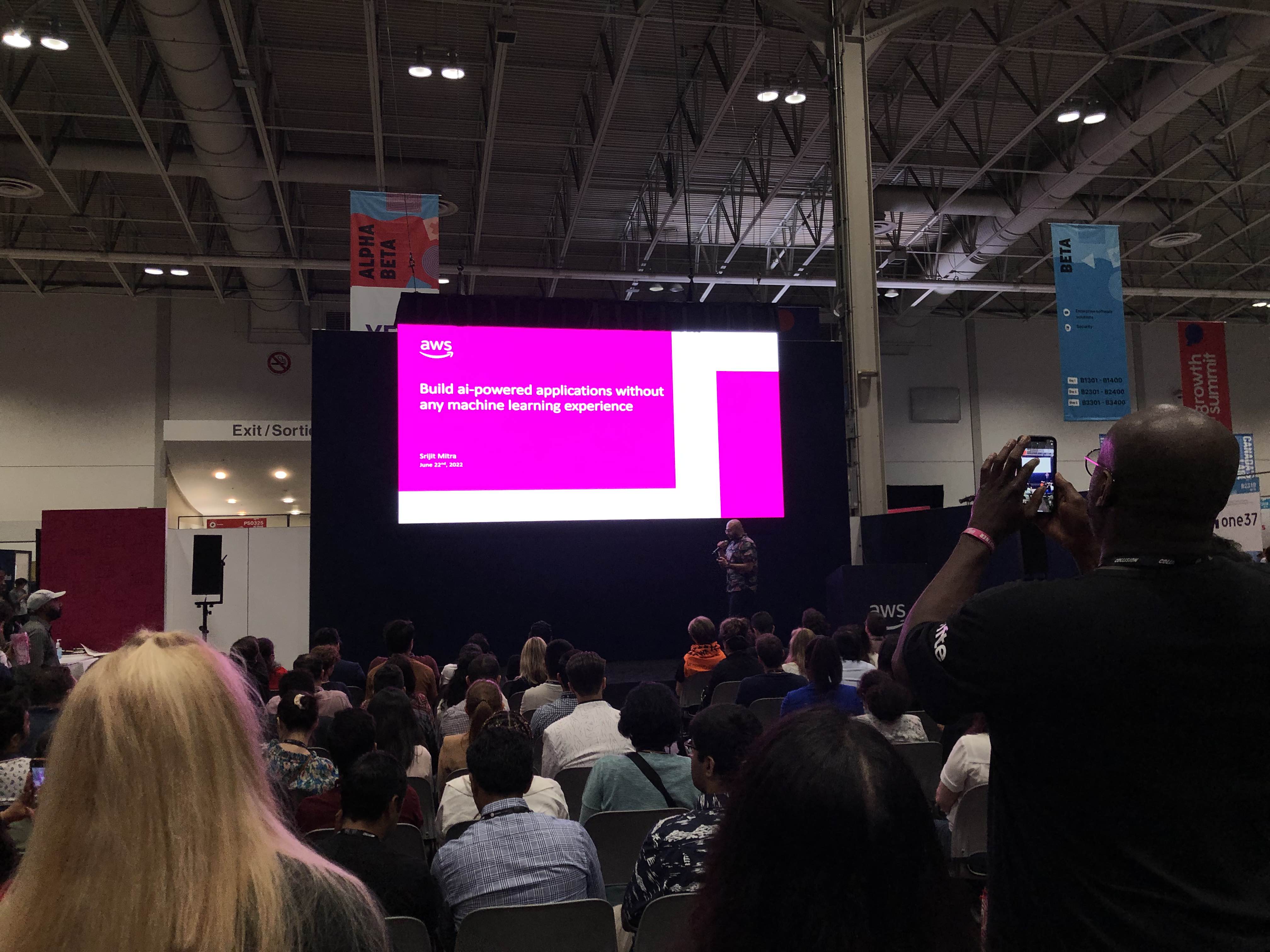 둘러 보다가 아마존 STARTUP LOFT에서 진행 중이던 프레젠테이션이 인기가 많길래 저두 뒤에 서서 같이 구경했어요. 종이로 된 문서를 필요에 맞게 데이터화 시키기에 너무 좋을 것 같은 AI를 바탕으로 만들어진 기능.