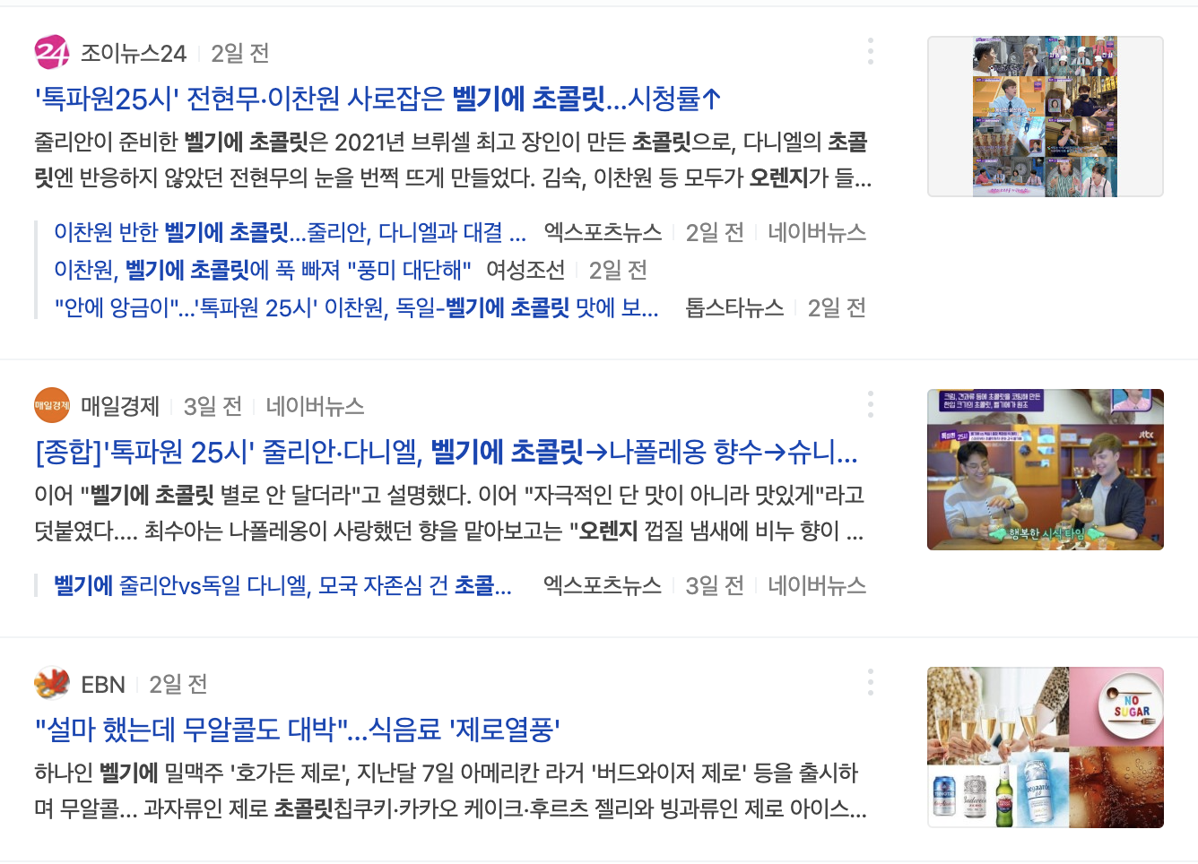 다름이 아니라 '톡파원 25시'란 프로그램에서 줄리안 님이 벨기에를 소개하며 벨기에 초콜릿까지 같이 나오게 되면서 인기 검색어가 되었던거더라구요.