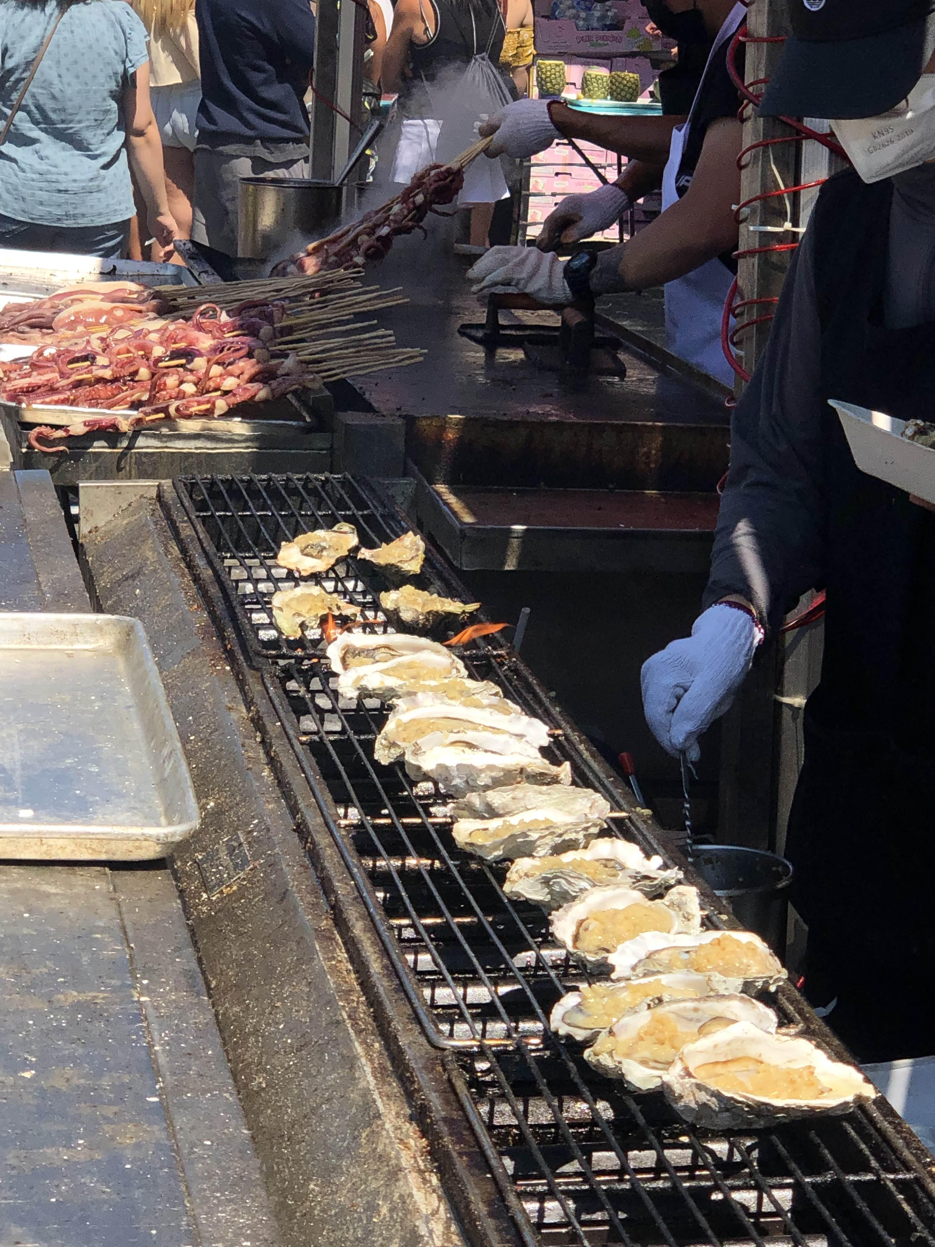 요기 뒤로 지나다 엄청 큰 굴을 손질하는 게 보여서 앞으로 가봤더니 굴 구이까지! 이 팀은 중국인들 팀이었는데 바로 옆에서는 문어다리를 구워서 팔고 계셨습니다. 문어다리 정말 좋아하는데 줄이 어마어마하게 길었고, 굴은 왠지 먹고 배탈날 것 같아서 패스^^