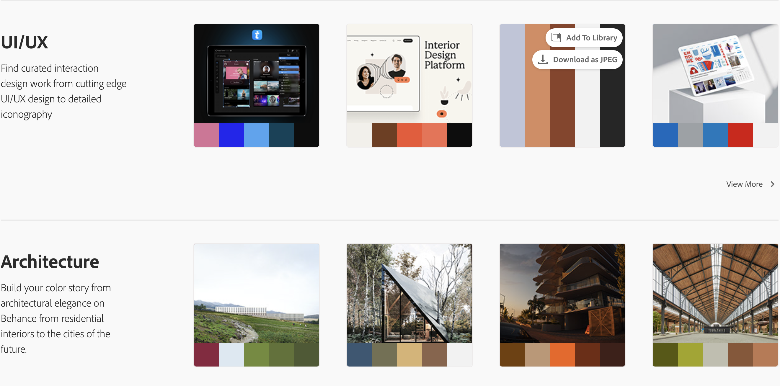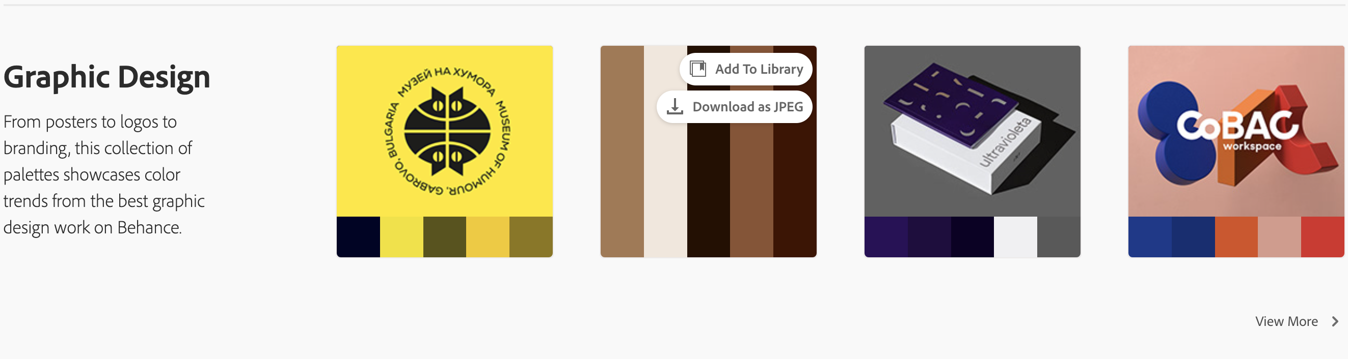 카테고리별로 트렌디하거나 많이 쓰이는 컬러를 참고할 수 있는 Adobe Color - trends