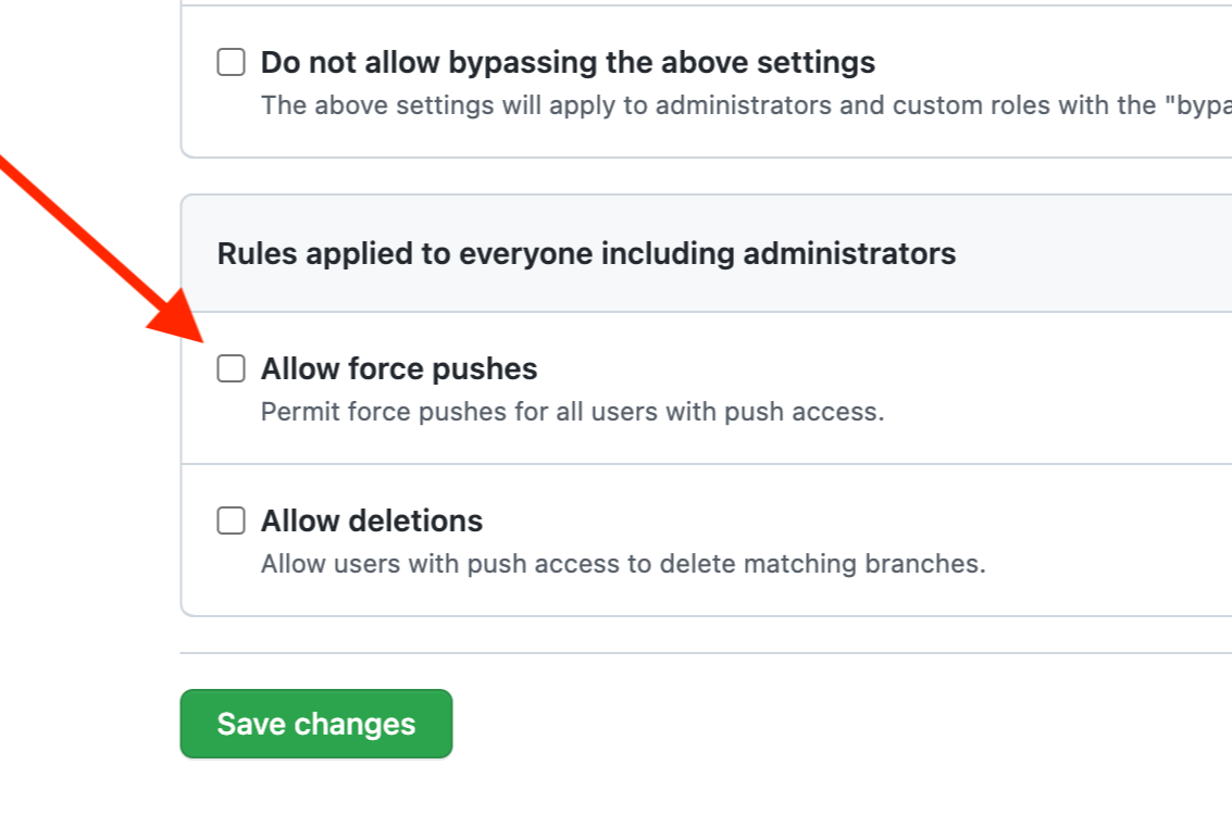3. 현재 branch가 protected 되어있어서 git push --force 가 안될 때
