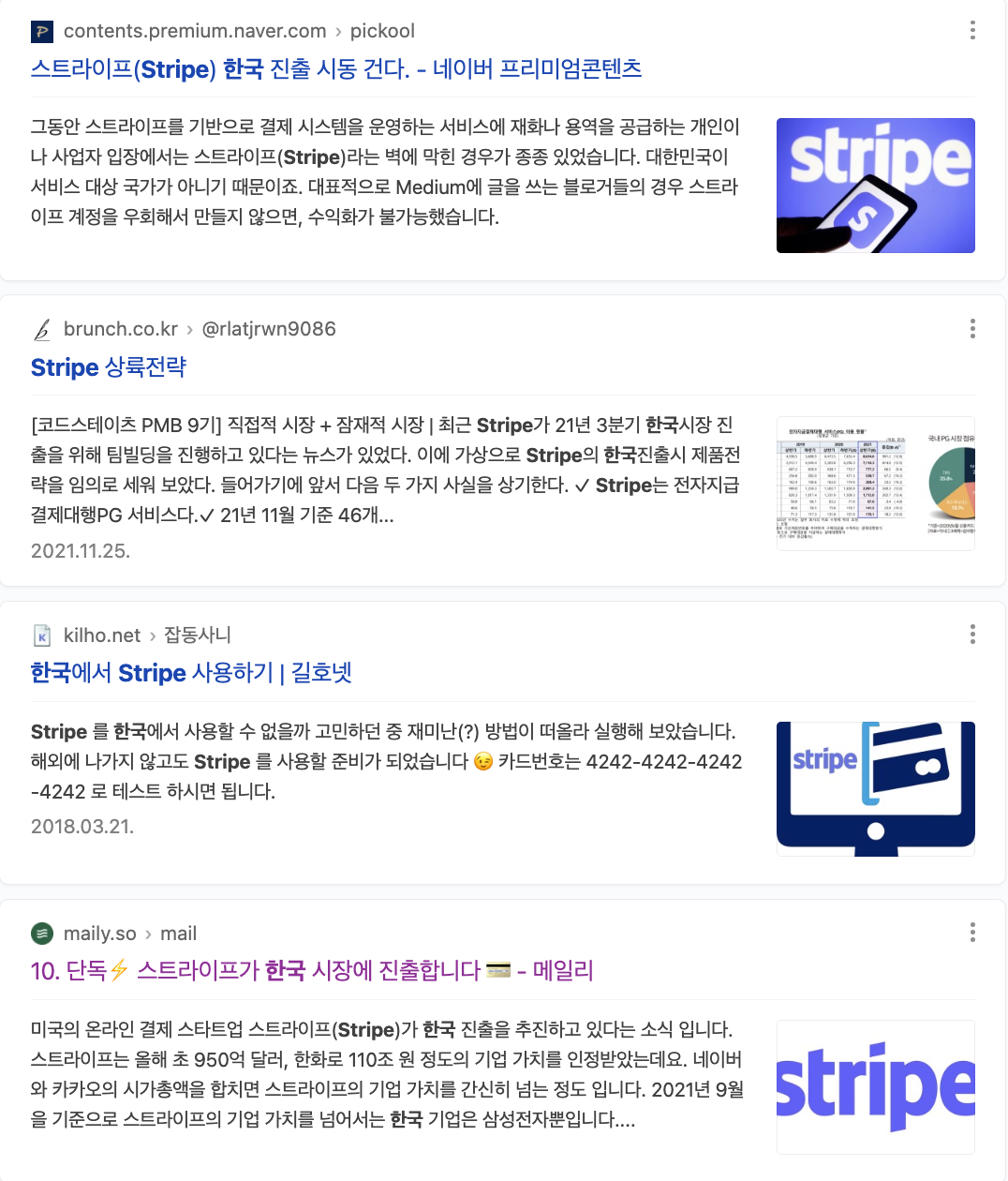 가장 안정적으로 많이 쓰이는 Stripe의 경우 아직 한국에서는 사용할 수 없고, 현재 진행중에 있다고 하네요.