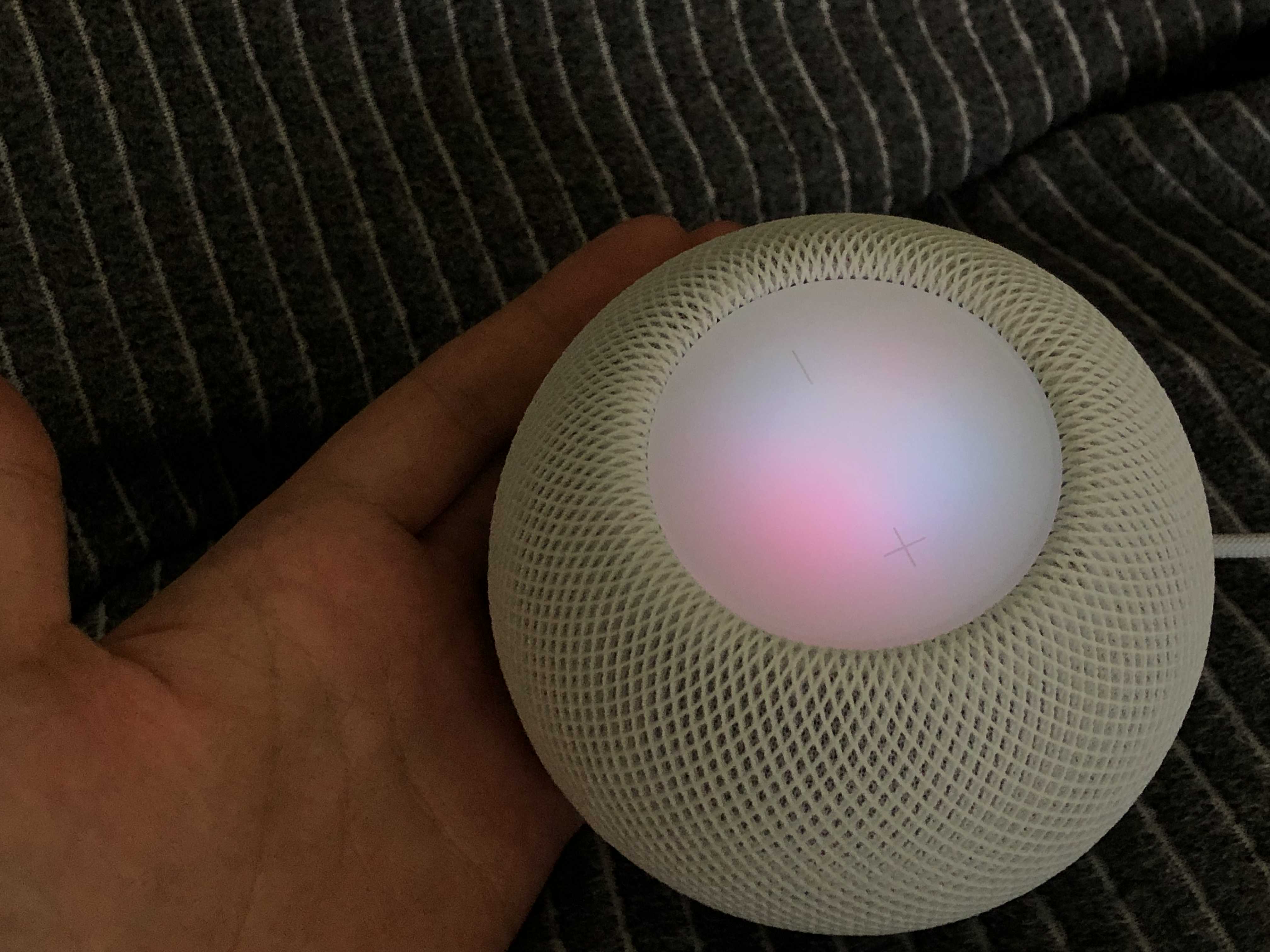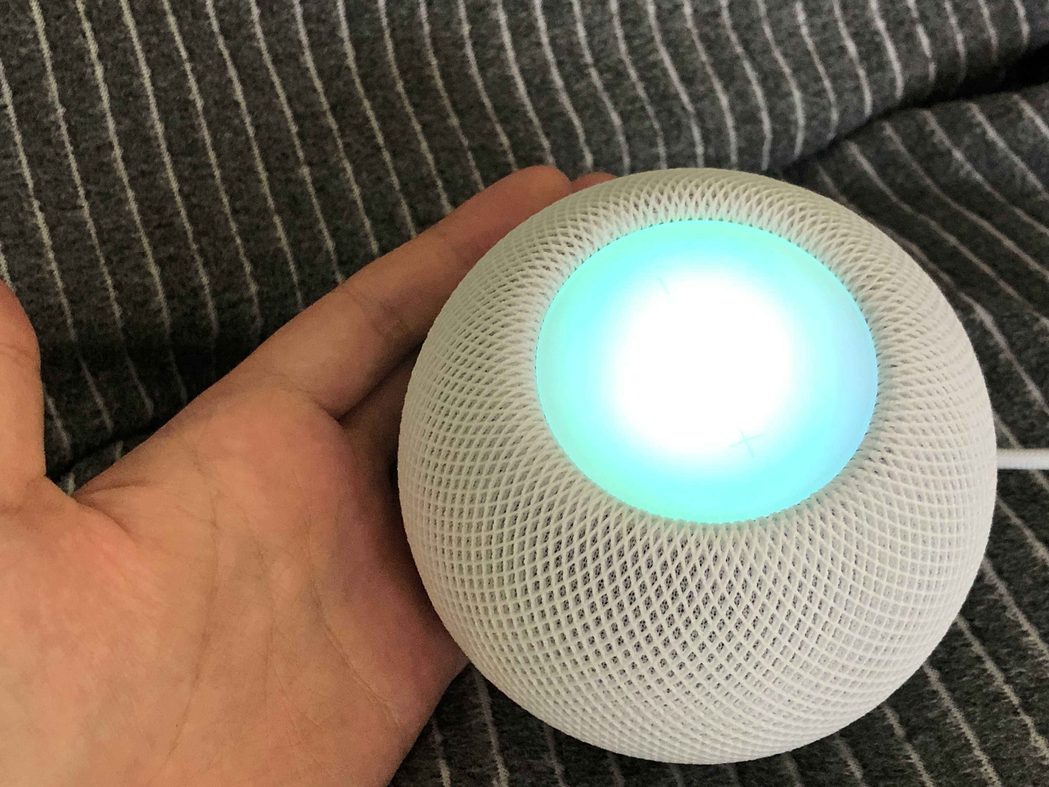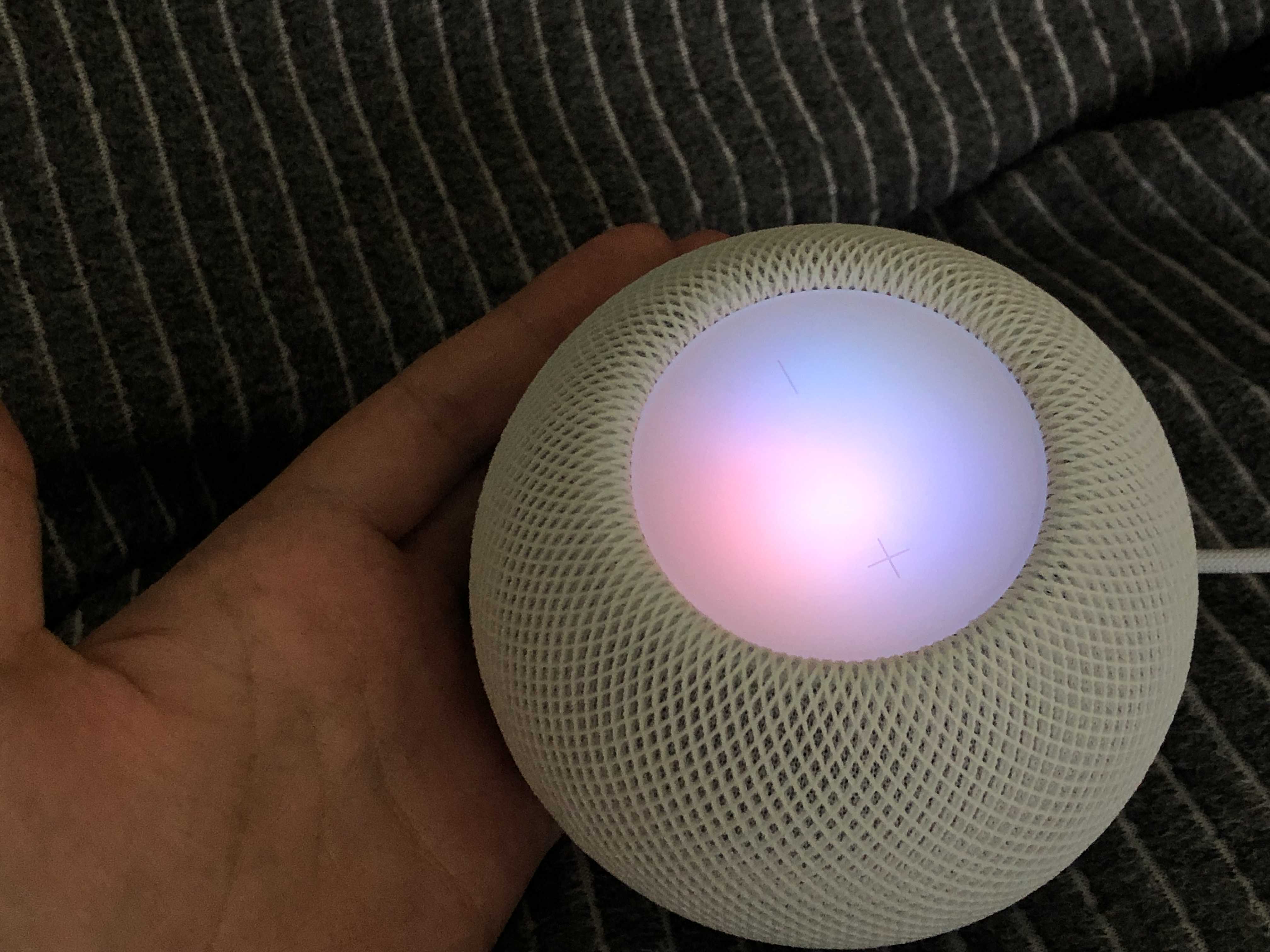 Siri에게 말을 시키면 이렇게 제 말을 인식하는 동안 빛이 바뀌어요 예쁘죠? 홈팟미니를 소중히 다루는 제 손 보이시나요 ㅎㅎㅎ