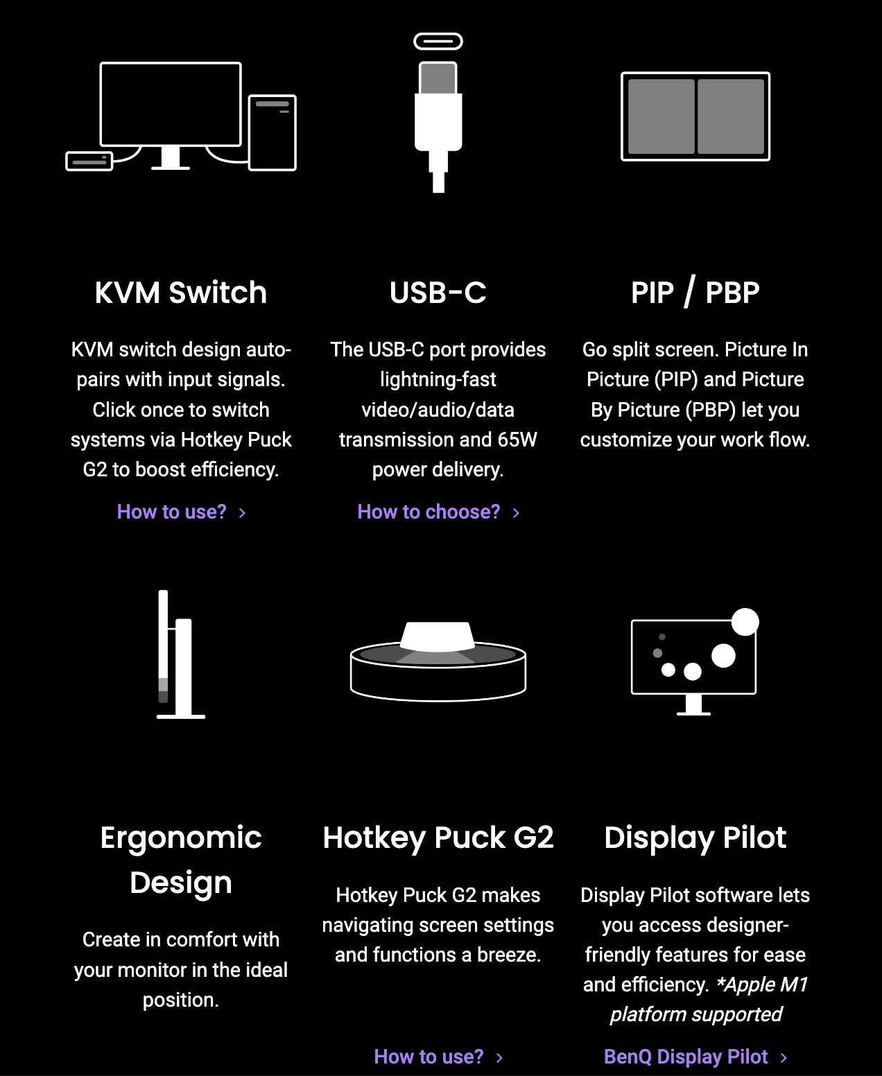 참고로 게임 모니터로도 인기가 많더라구요? 저는 전혀 몰라서 처음엔 BenQ, 27인치로만 검색해서 찾아보다가 나중에 맥북이랑 쓰려면 4K는 되야한다는 글을 봐서 4K도 추가해서 검색해보고, 한국어로 나온 벤큐 시리즈별 설명이 나와있어서 고민없이 PD 시리즈로 골랐습니다.