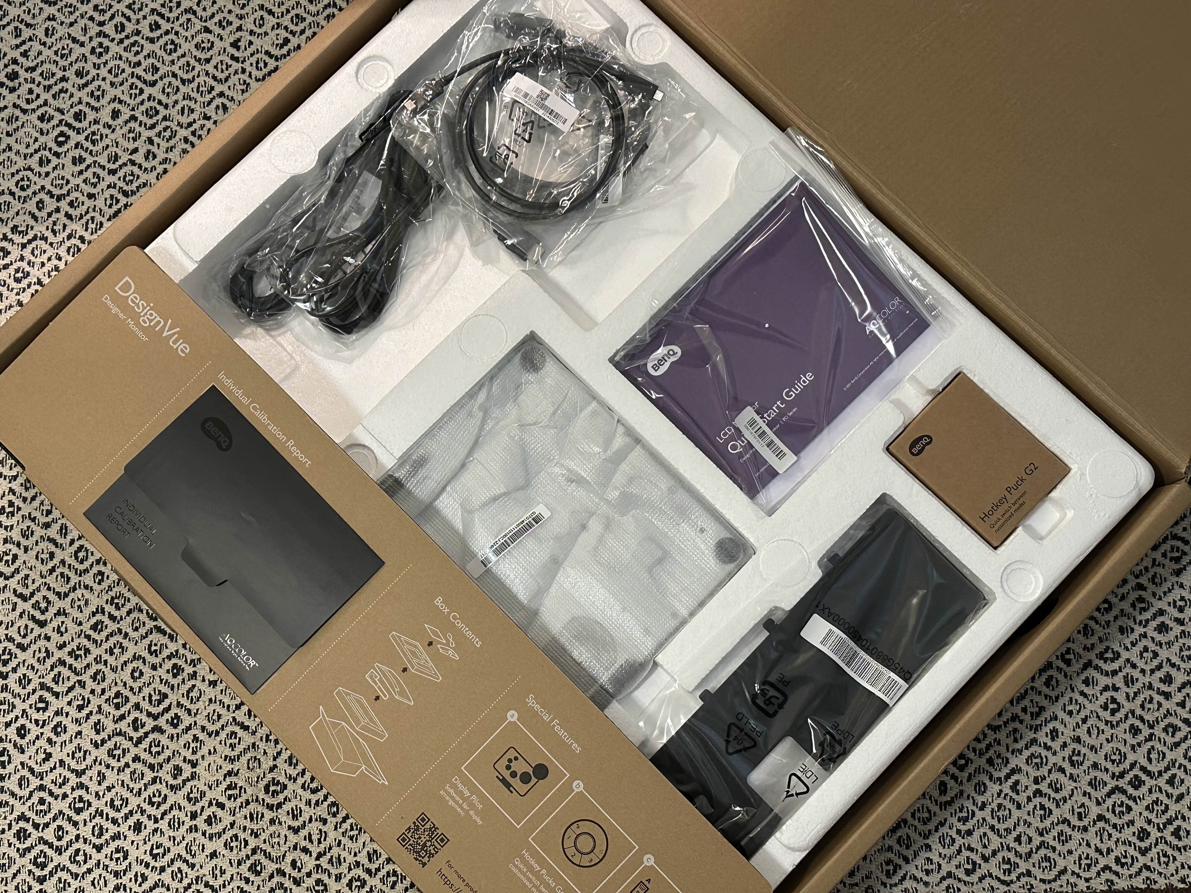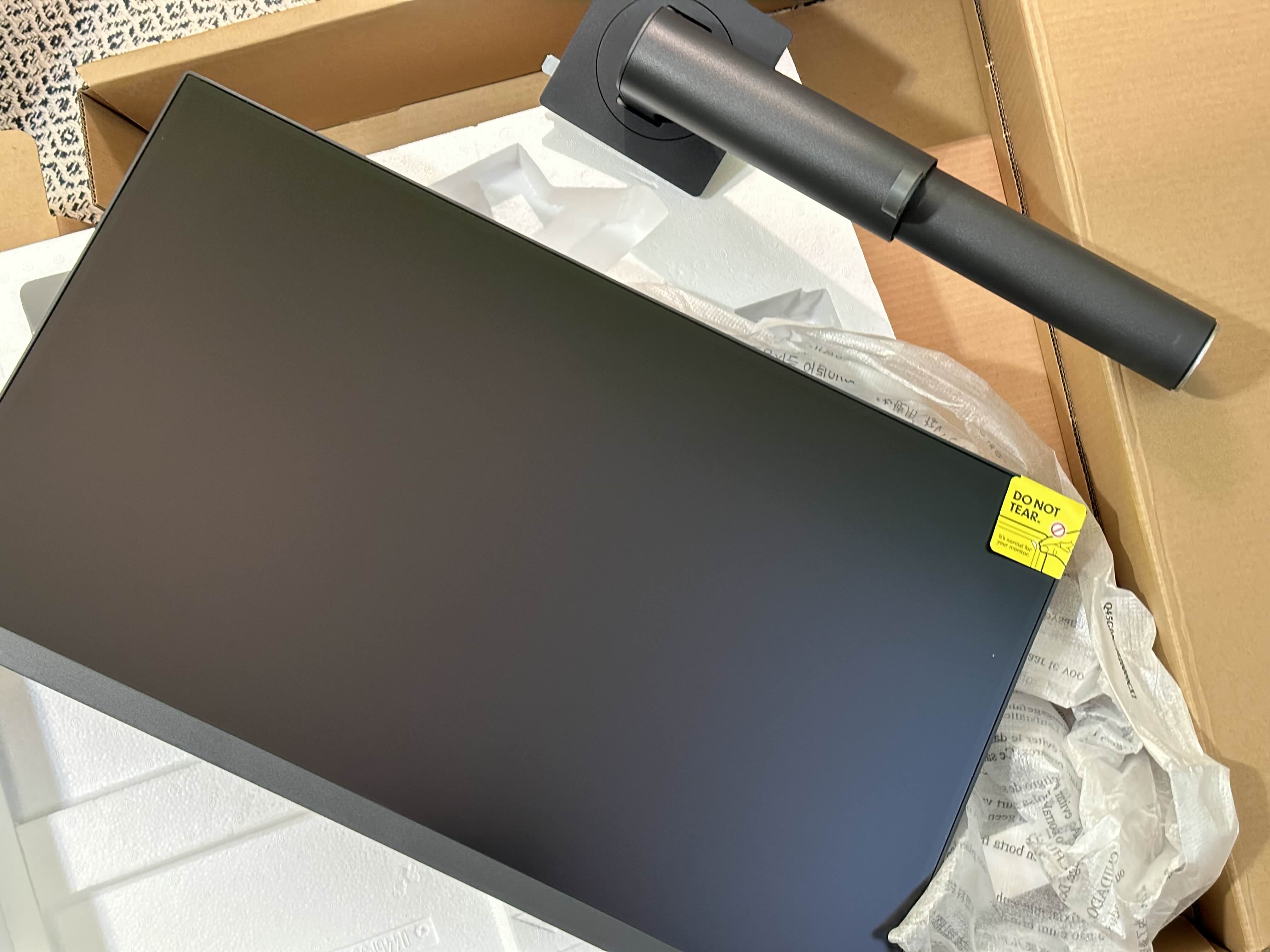 모니터 스크린을 꺼내봤더니 깔끔하고 매트한 느낌이 너무 마음에 들었어요. 꽤 묵직한 편.
