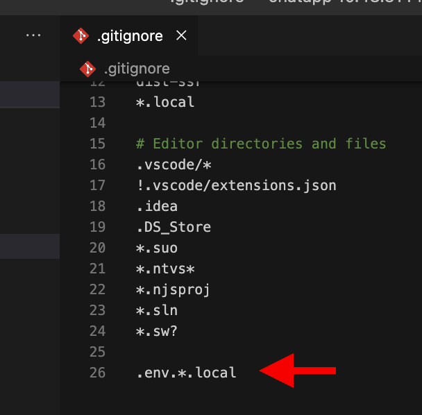 • .env.*.local files are local-only and can contain sensitive variables. You should add *.local to your .gitignore to avoid them being checked into git.