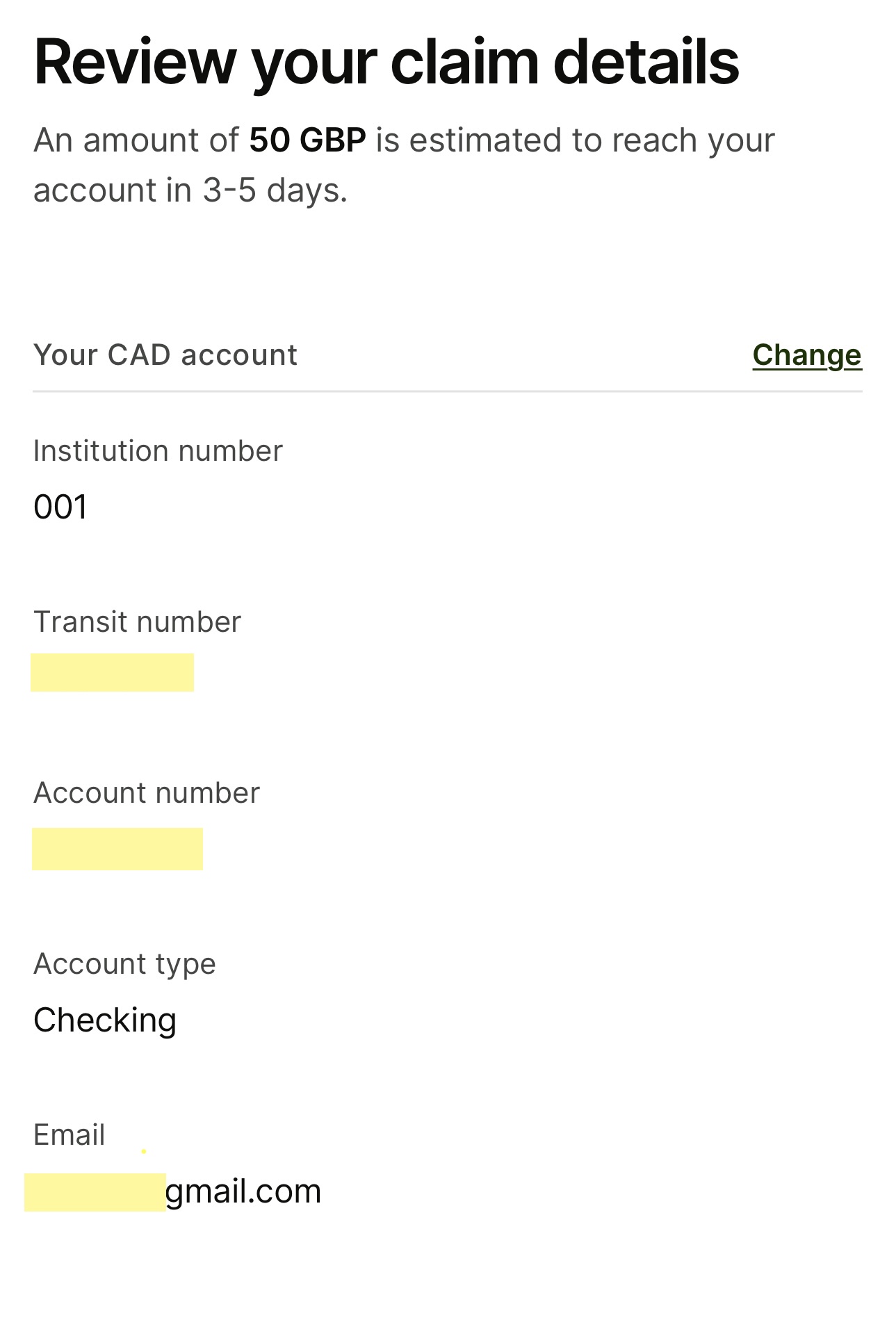 이 때 필요한 내용은 은행 Institution number, Transit number, Accout number, Email 정도 입니다. 한국 계좌로 받을까 고민하다 그냥 캐나다에서 쓰는 BMO 체킹 계좌로 입금받았어요.