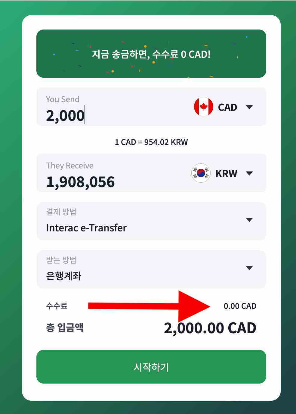 2000 CAD를 Interac e-Transfer로 송금했을 때 원화로 들어오는 금액입니다.