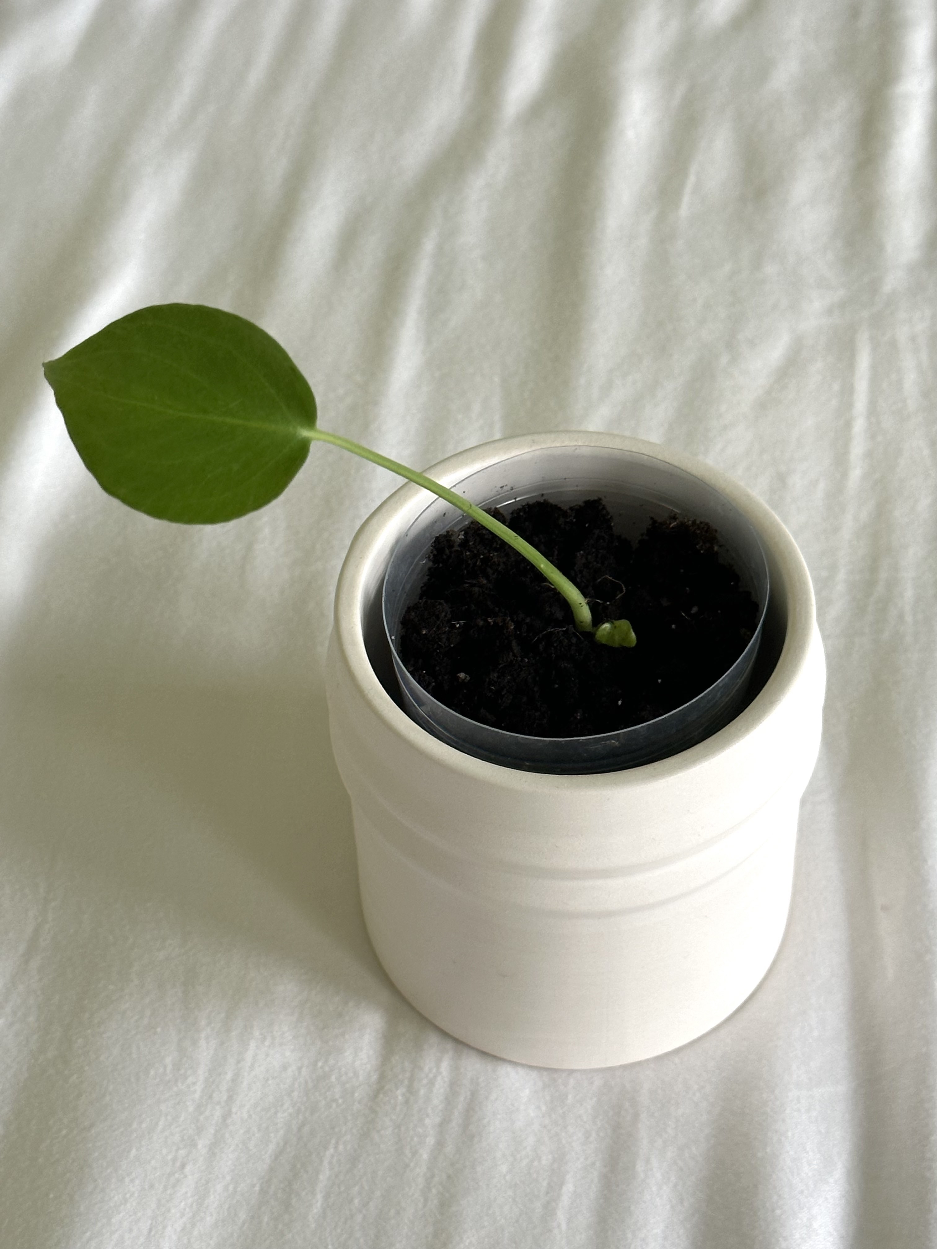 전날 사진만 후다닥 찍고 밤에 둘다 화분을 갈아주는데 이 작은 몬스테라 잎 하나만 따로 떨어져나와서 손바닥만한 작은 화분에 옮겨 심었답니다. 이건 좀 키워서 V에게 나눠줄 예정.