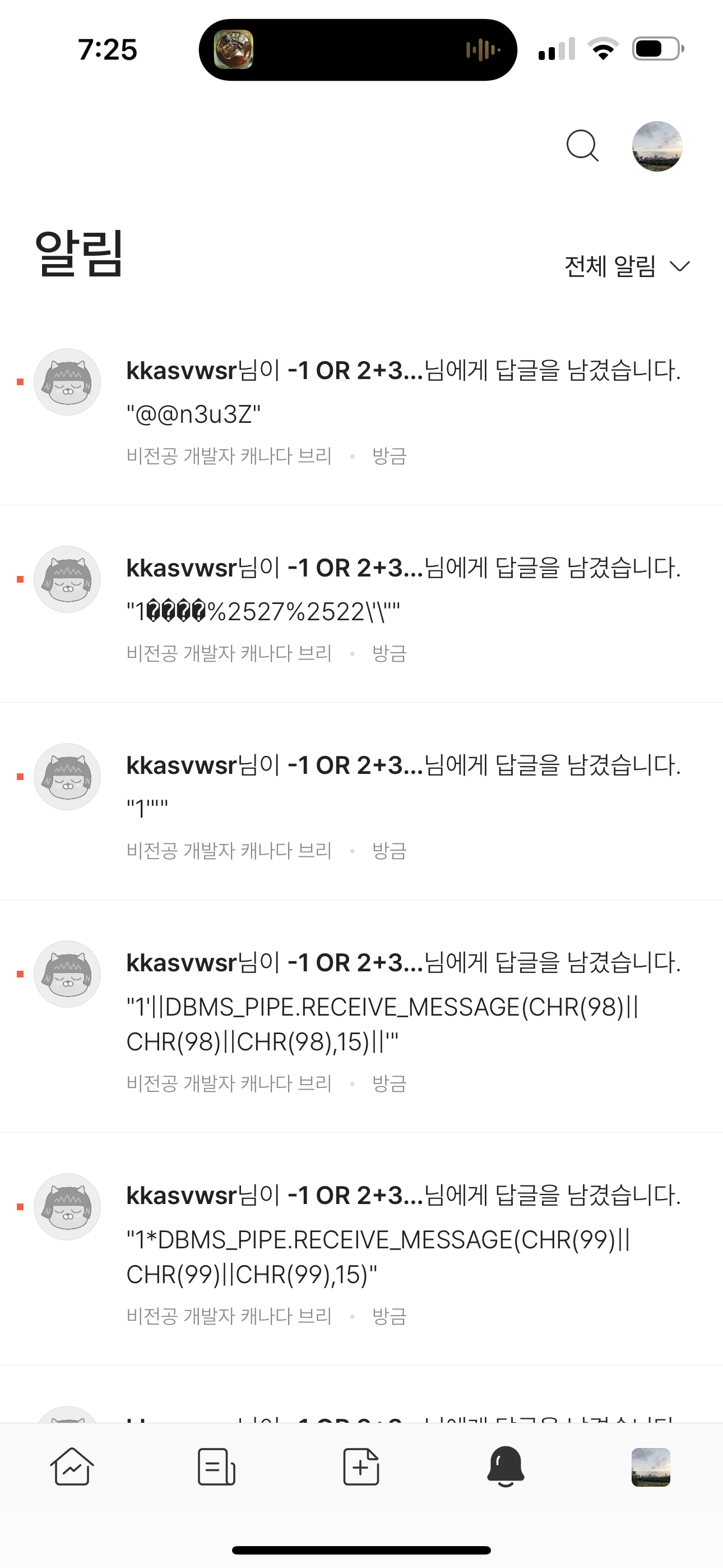 캐나다 시간으로 오늘 오후 4시쯤(한국 시간으론 토요일 새벽 5시) 티스토리 앱으로 댓글이 달렸다는 알람이 들어오기 시작했는데,