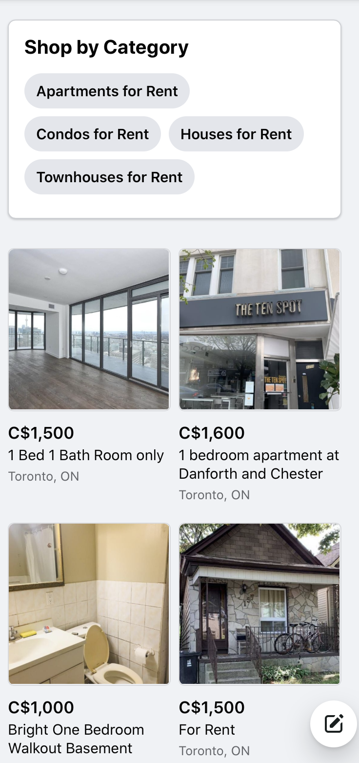 처음에는 토론토 한인 사이트인 '캐스모'와 개별 real estate ageny 홈페이지를 통해서 찾아봤었는데, 렌트나 셰어 할 집을 구하고 계신다면 페이스북 마켓 플레이스가 최고입니다!