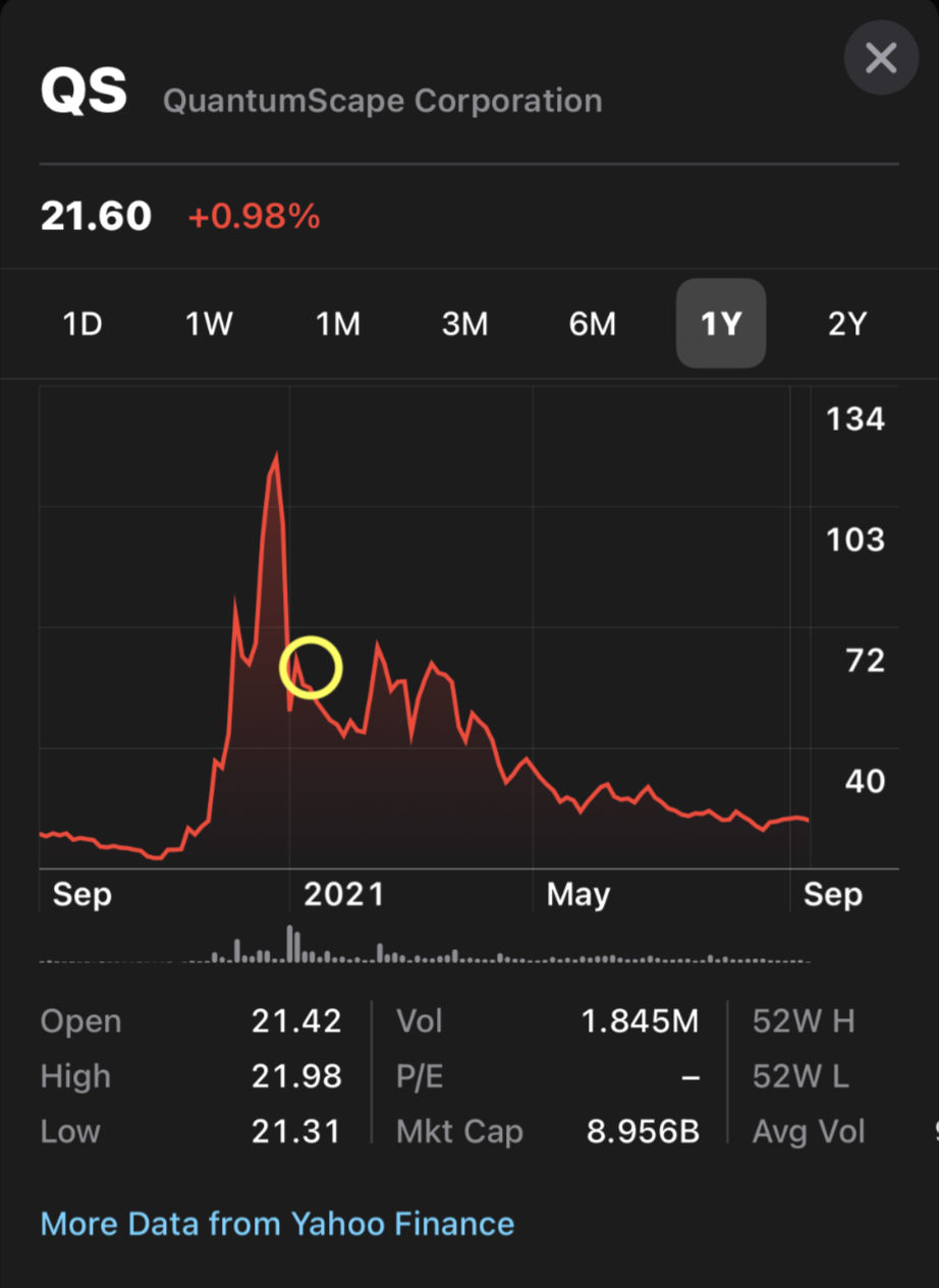 그래서 원래부터 주식을 잘 알지는 못했지만 초반에 나름의 신념을 가지고 신중하게 골라 담던 스타일을 버리고, 친구가 몇 백 프로 수익을 냈다는 주식들을 지켜보다가 조금 하락했다 싶을 때 사들였어요. 바로 Plug Power, FuelCell, QuantumScape입니다 ^^;;; (가지고 계신 분들 많이 답답하시죠? 끙... 저두요ㅎㅎㅎ)