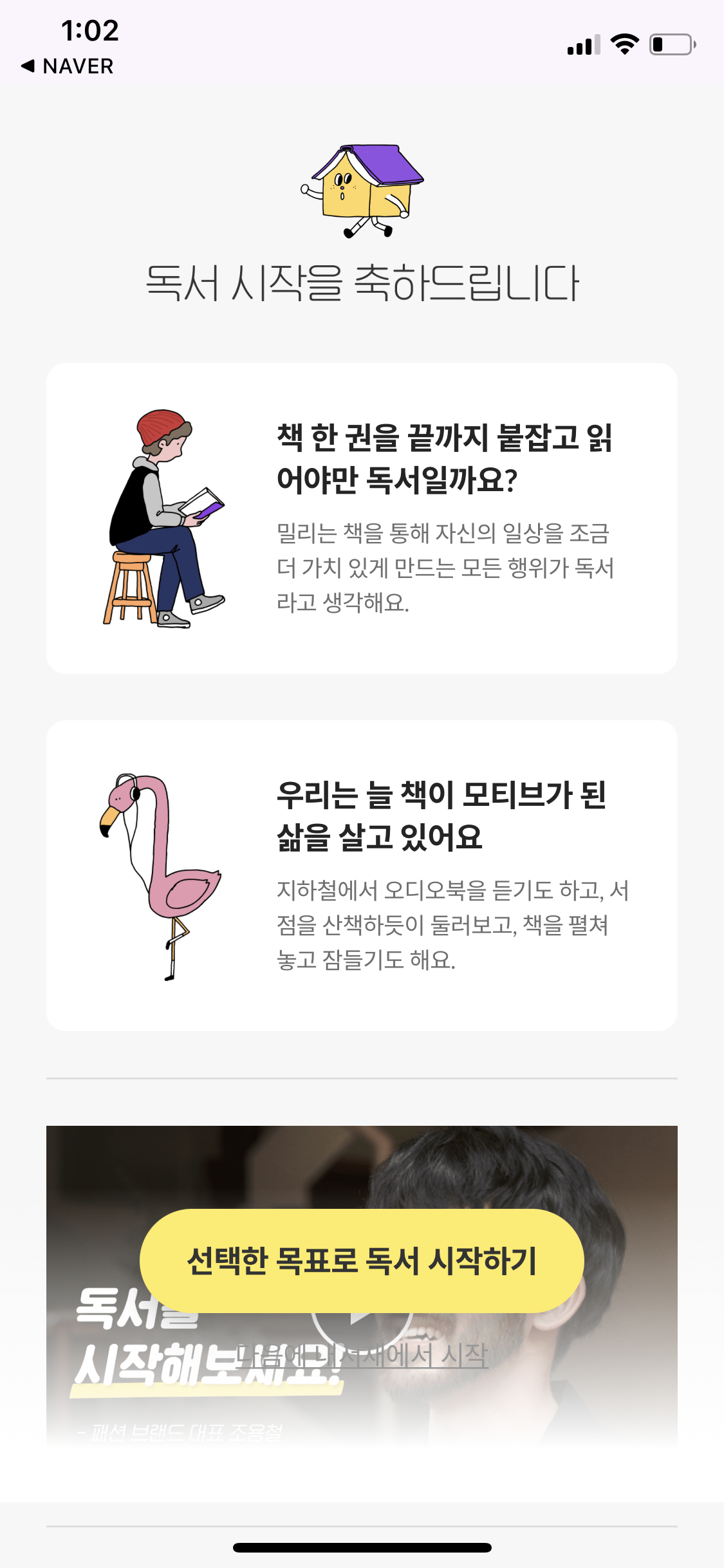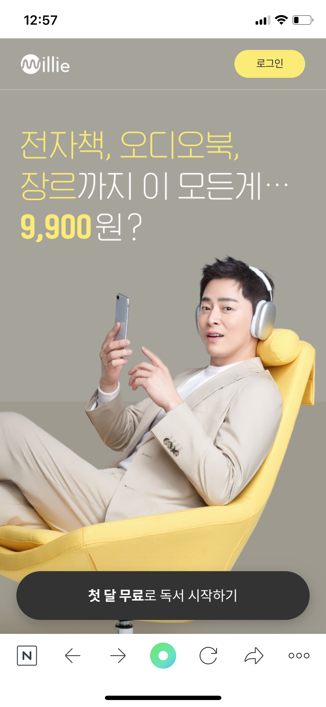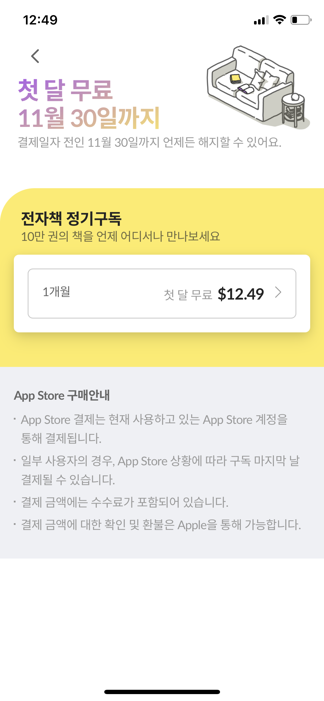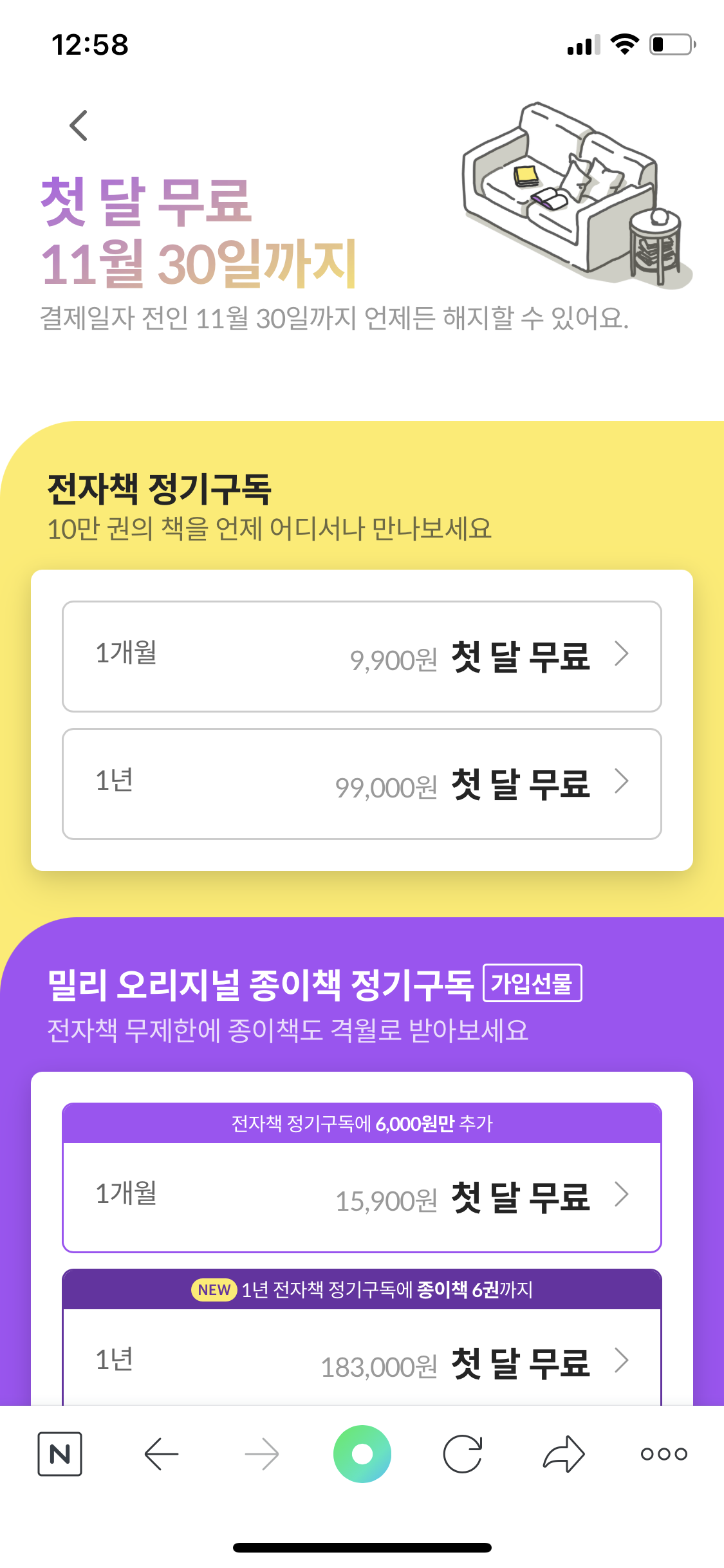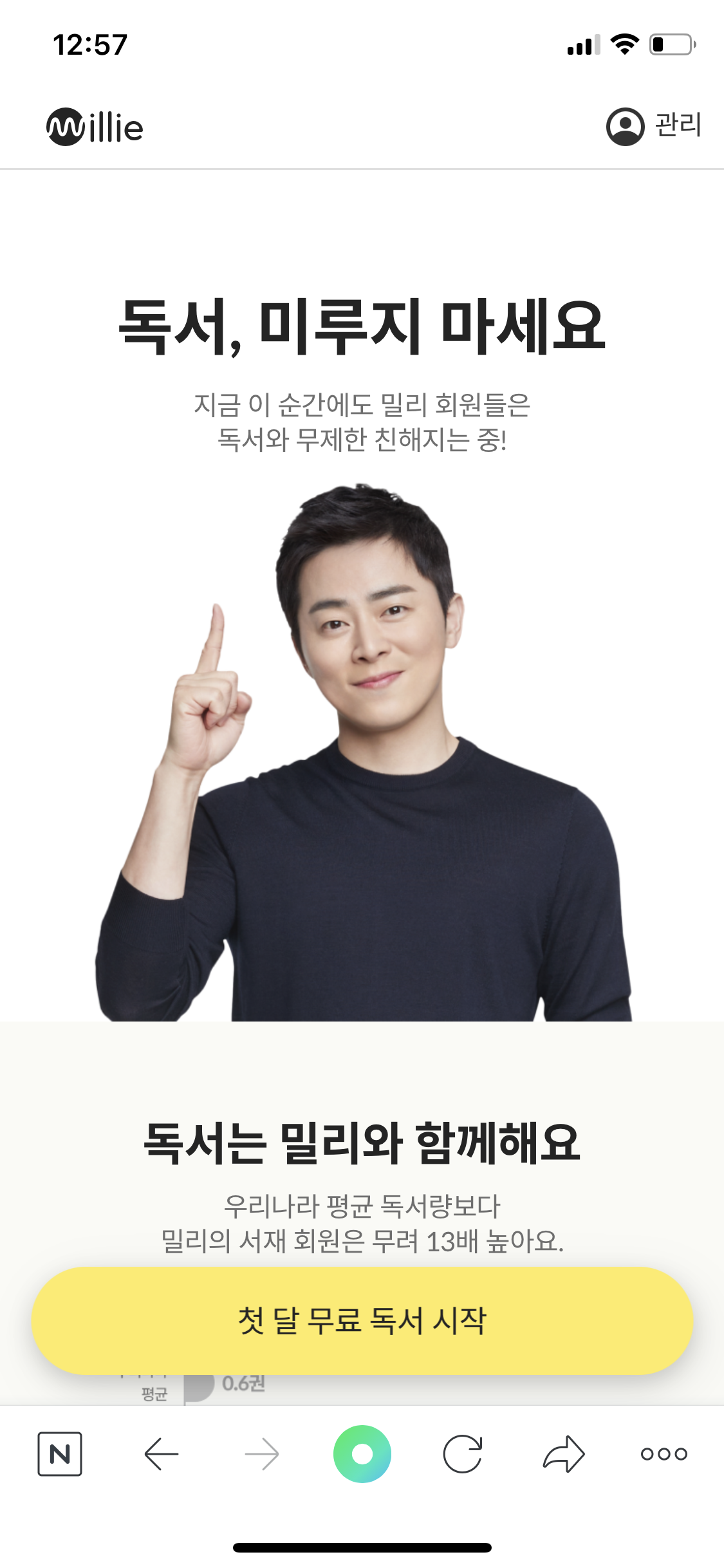 하단의 첫 달 무료 독서 시작 버튼을 누릅니다.