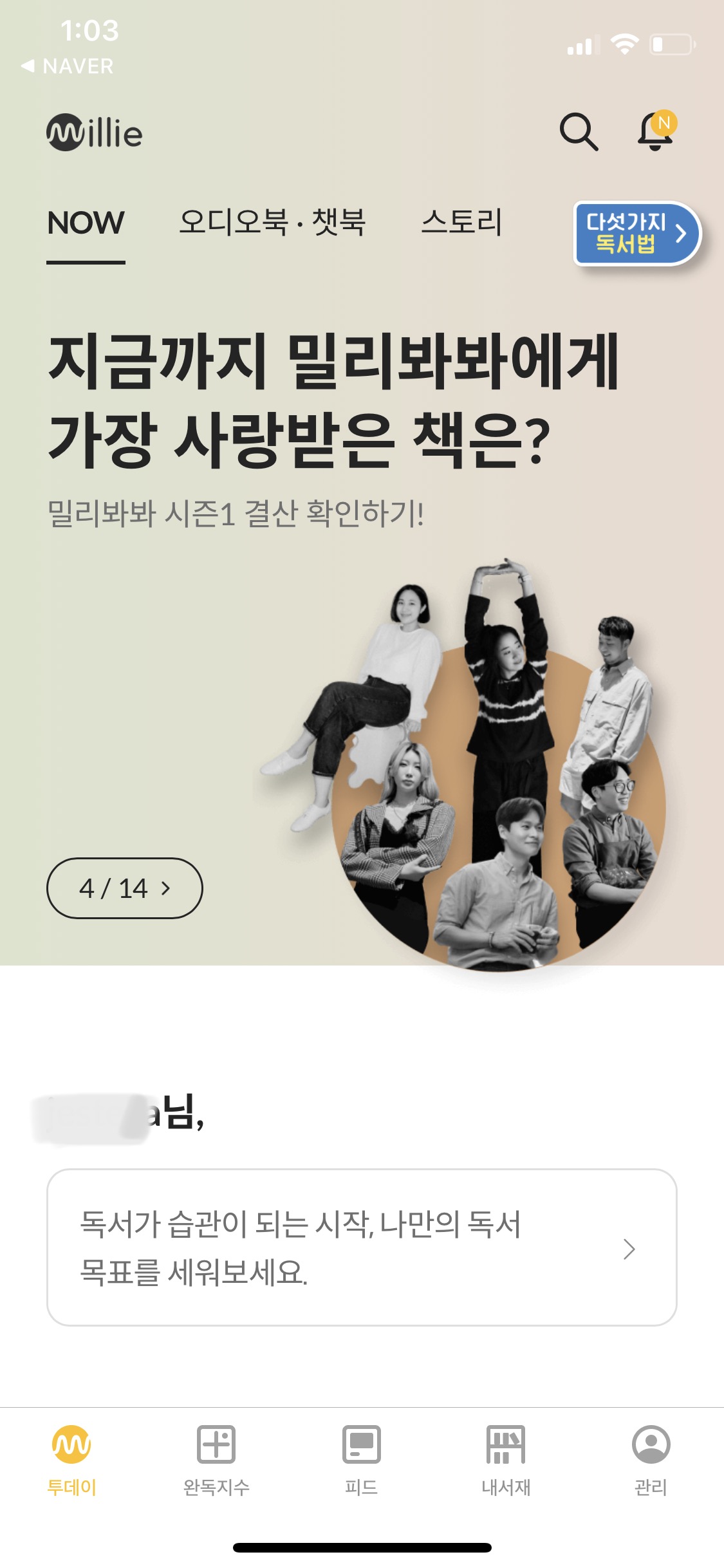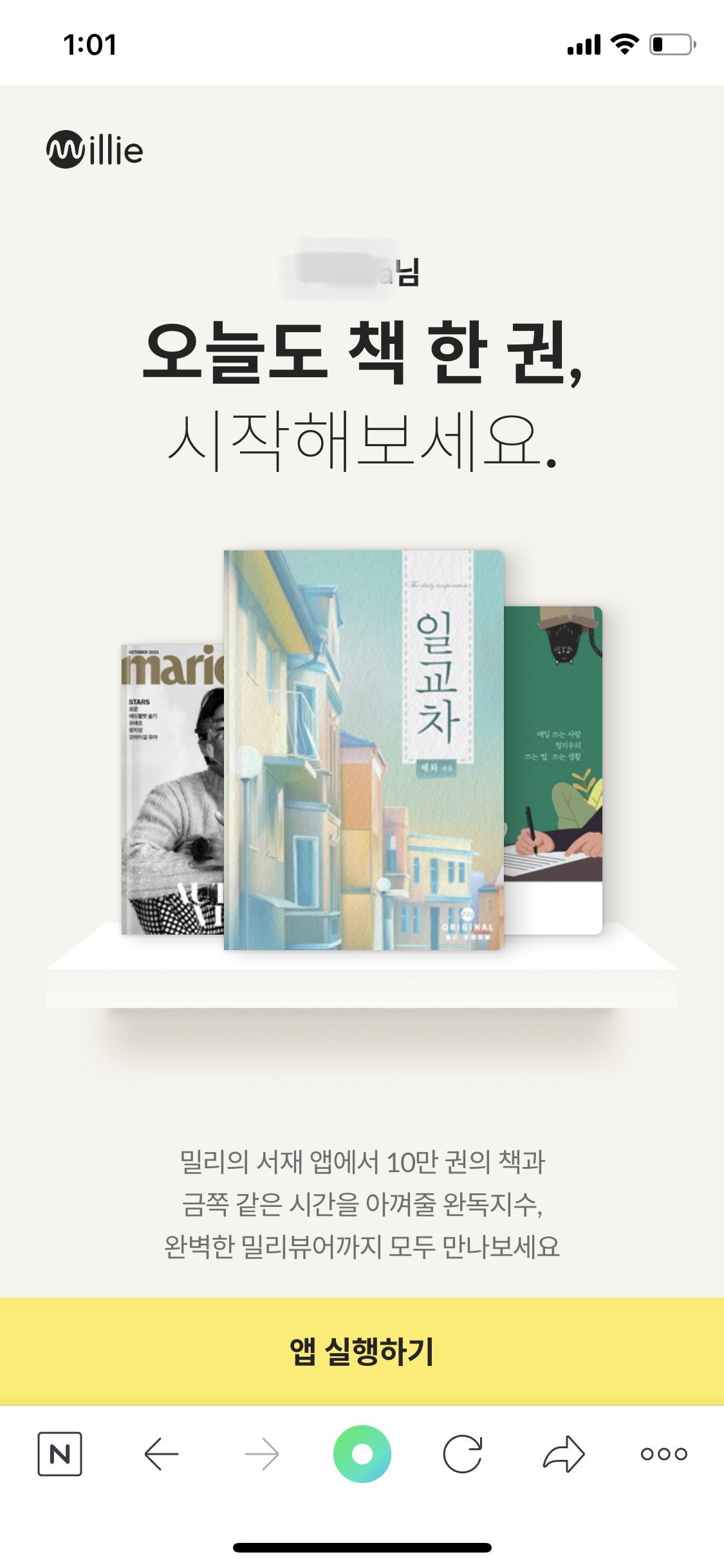 데브리입니다. 드디어 고민만 하던 밀리의 서재를 드디어 구독했어요!
