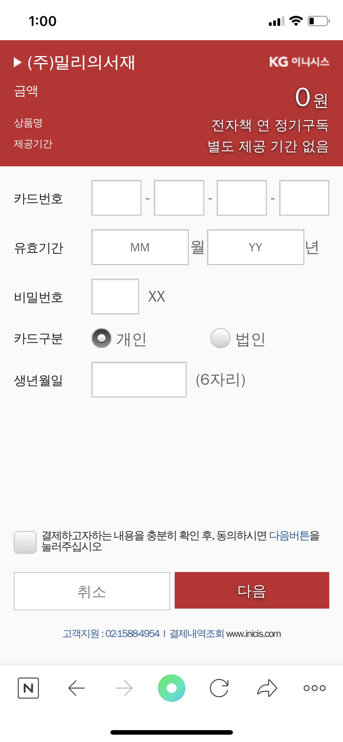 앞으로 쭈욱 이용할 생각이라 고민 없이 1년 치로 구매했어요. 카카오페이... 한국에선 정말 보편화되어 있다죠? 저는 써본 적이 없어서^^;;; 신용카드로 그냥 결제했어요. 생각해보니까 네이버 페이 충전하면 포인트 같은 거 있지 않나요? 네이버 페이로 결제할걸 그랬나...? 싶지만 그런 모든 과정이 다 귀찮으니 해외거주자에겐 그냥 바로 결제할 수 있는 신용카드가 최고인 것 같네요.