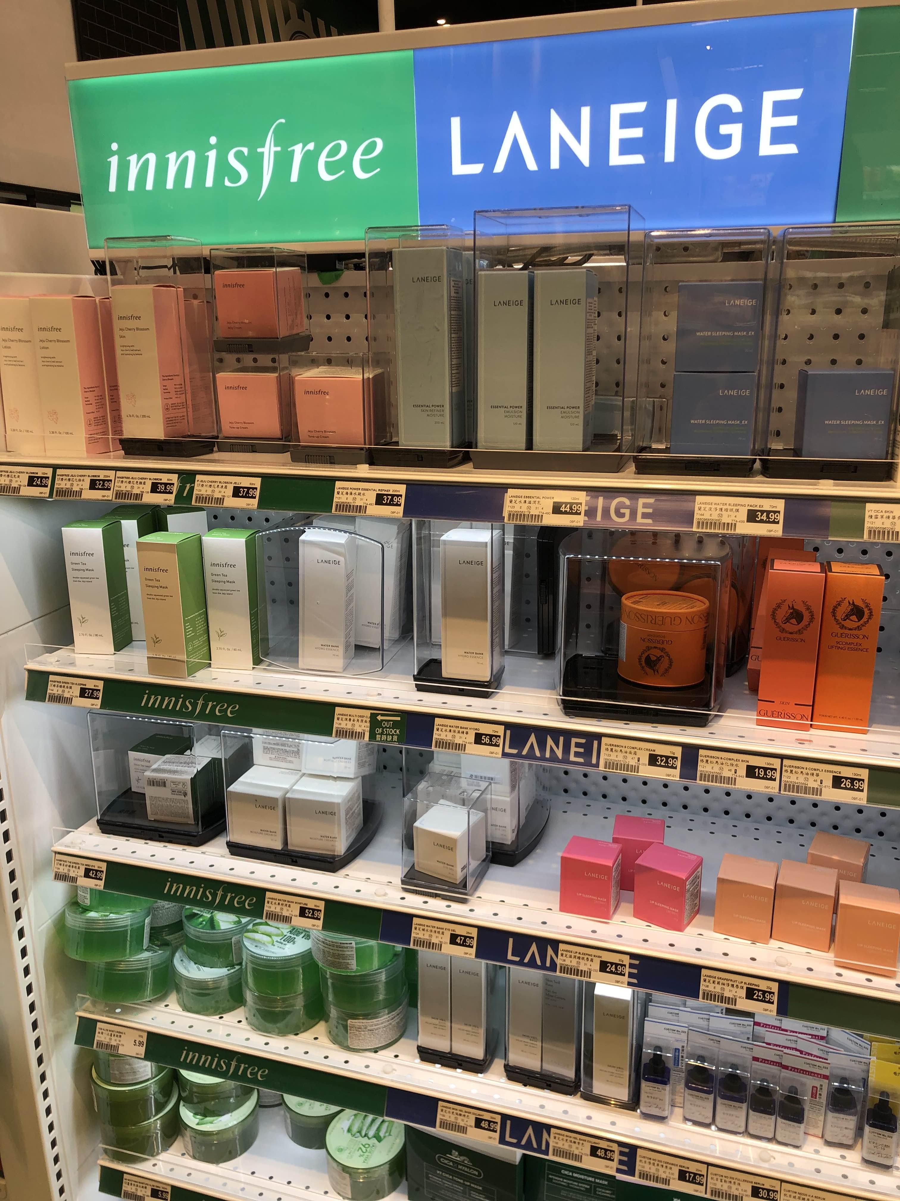 한쪽에는 화장품 코너도 있었는데 우리나라 브랜드 중에는 이니스프리와 라네즈가 있었어요. 요즘 이니스프리랑 라네즈가 한국에서 어느정도 가격대인지는 모르겠지만, 할인 전혀 없는 정가보다 조금 높은(아마도?) 정도의 가격이었던 것 같아요.