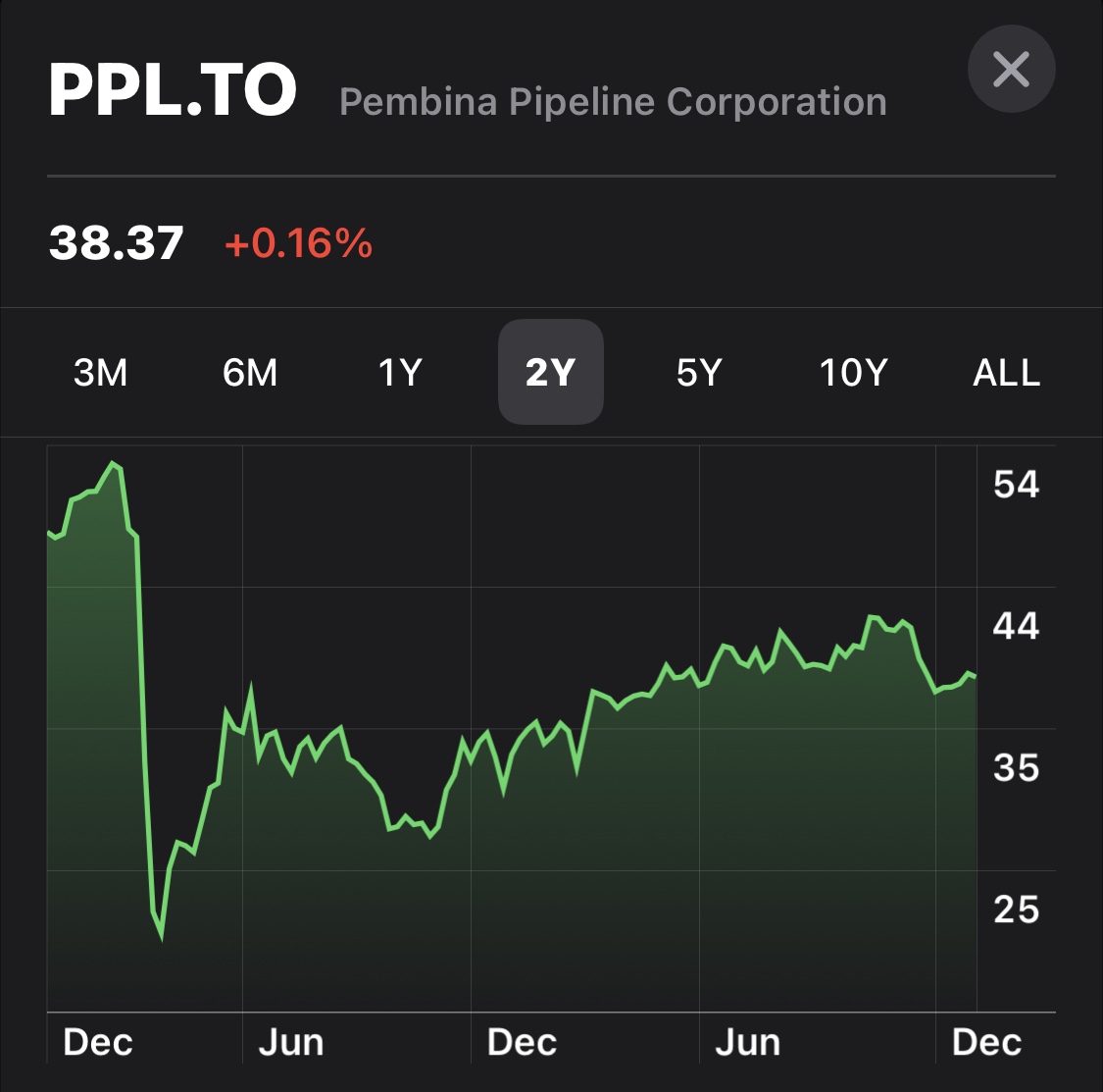 잘 알지도 못하고 2020년 여름에 이것저것 매수할 때 같이 했는데 당시에도 단지 2020년 이전과 비교해서 많이 떨어진 상태였고 배당금이 높다는 이유로만 매수했습니다. 7% 이상의 높은 배당금을 캐나다 달러로 받을 수 있어서 팔지않고 계속 보유중입니다.