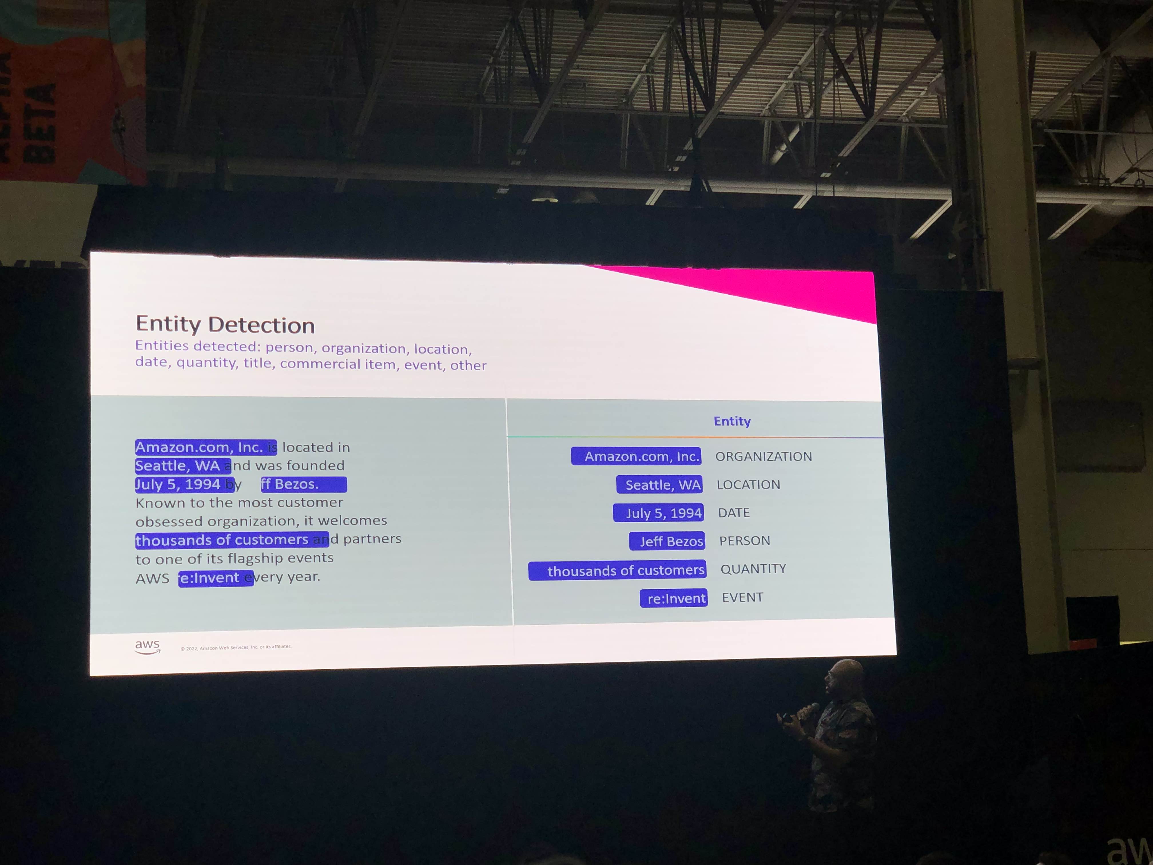 둘러 보다가 아마존 STARTUP LOFT에서 진행 중이던 프레젠테이션이 인기가 많길래 저두 뒤에 서서 같이 구경했어요. 종이로 된 문서를 필요에 맞게 데이터화 시키기에 너무 좋을 것 같은 AI를 바탕으로 만들어진 기능.