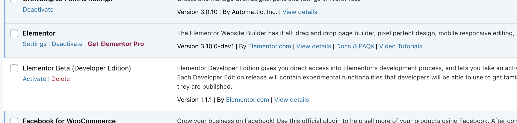 * Elementor Beta (Developer Edition)은 설치 안해도 됨