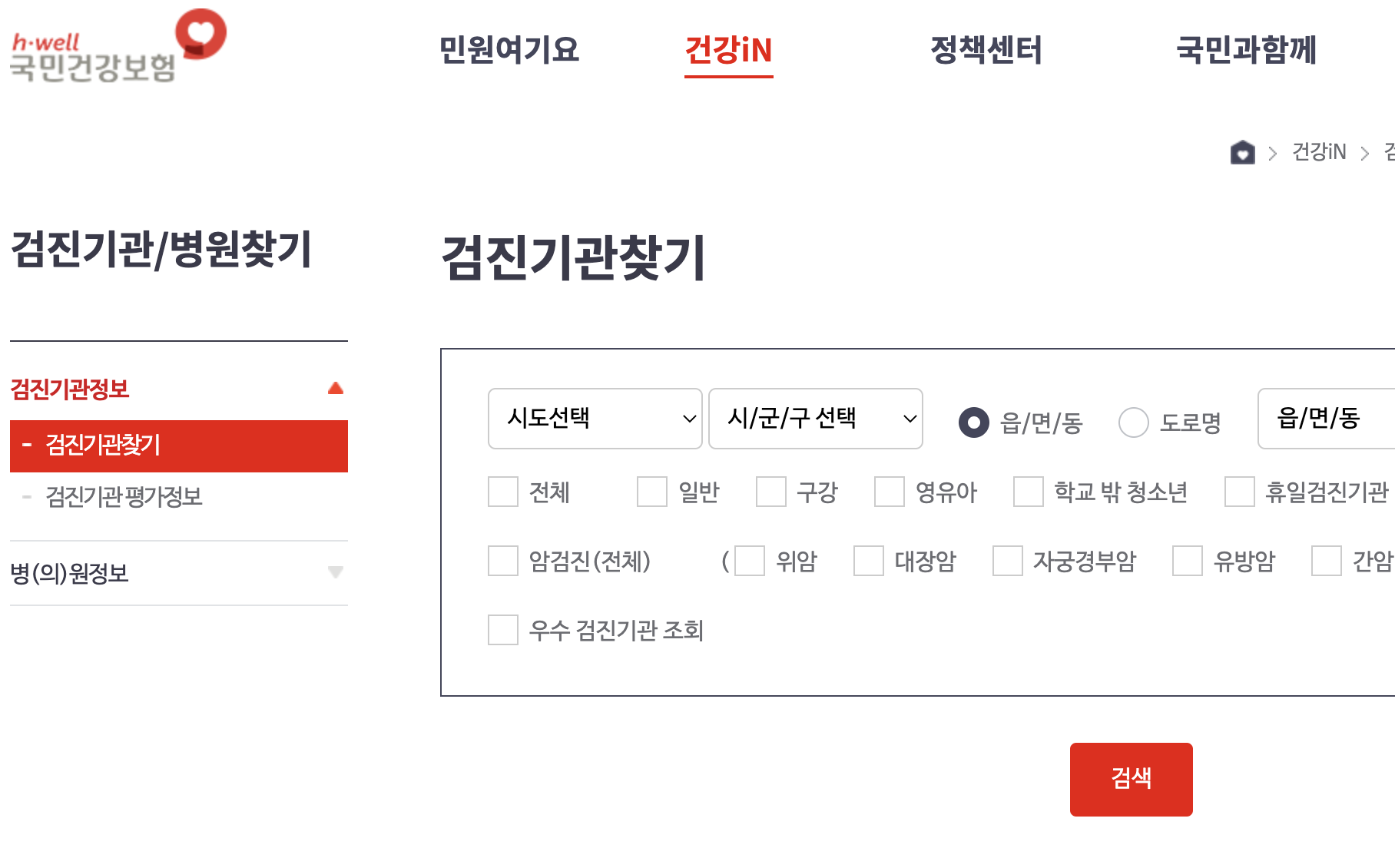 국민건강보험 홈페이지에서 검진기관도 바로 찾아볼 수 있는데, 산부인과가 아닌 일반 내과에서도 검사를 해주시는 곳이 많아요.