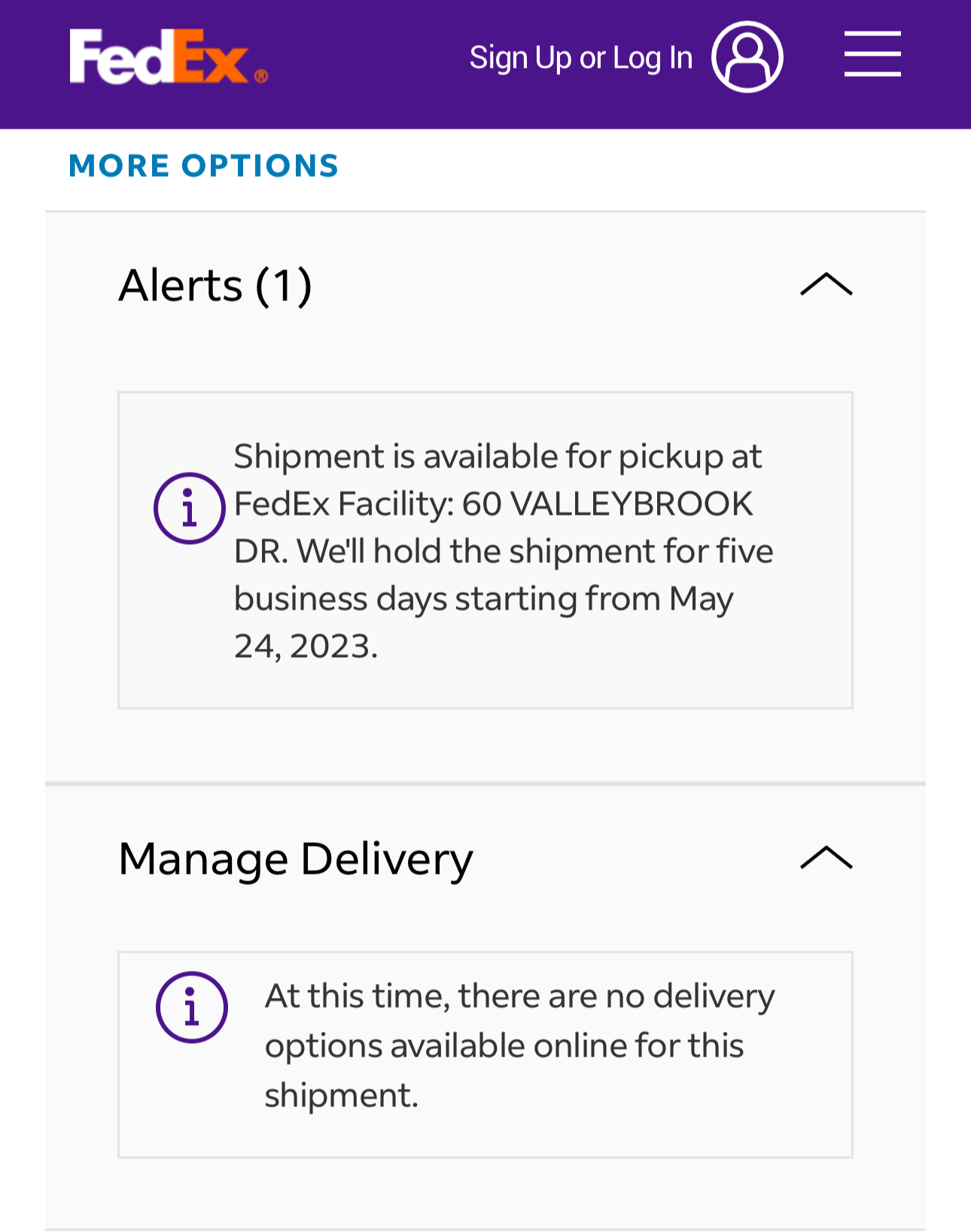 그래서 수요일에 Fedex에서 배송을 왔다가 그냥 돌아갔다는 걸 확인했다. 심지어 door tag도 남기지 않은 채...