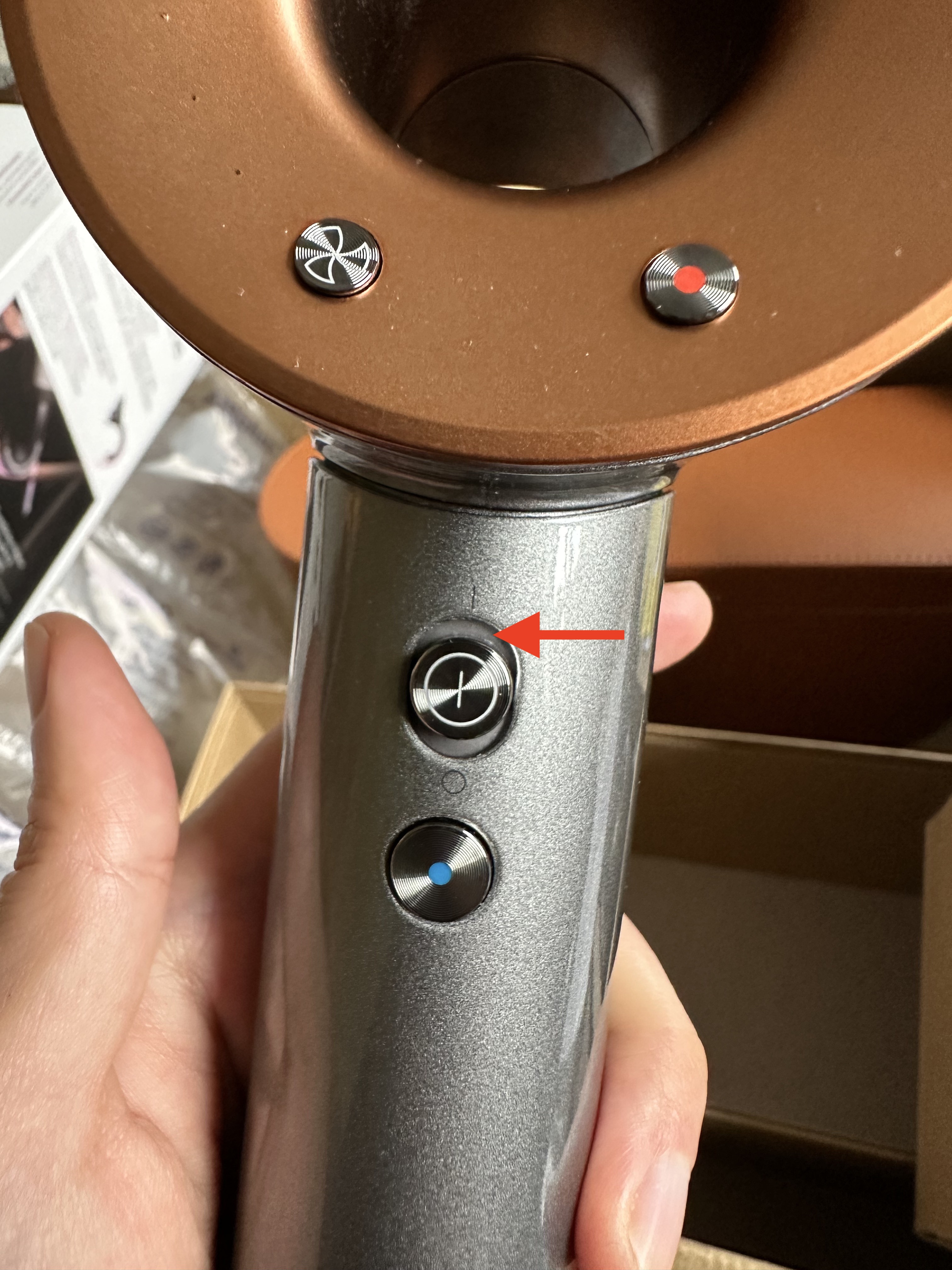 처음 받고 이상해서 반품했는데, 두번째로 온 것도 비슷하더라구요. 또 교환하기도 귀찮고 원래 이런가보다 하며 그냥 쓰고 있어요ㅎㅎㅎ 다이슨 슈퍼소닉이나 에어랩 쓰시는 분들! 전원 스위치 버튼 원래 이런가요? 😅