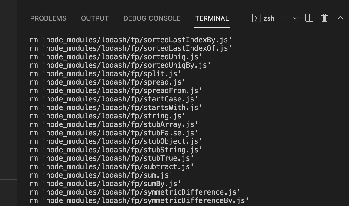 터미널에서는 이렇게 노드 모듈의 각 파일들이 지워지는 걸 확인하실 수 있구요,
