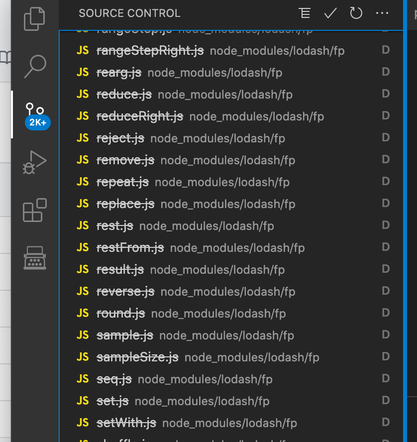 vscode 에서도 깃에 저장된 노드모듈 파일들이 지워졌음을 확인하실 수 있어요. 간단하죠? :)