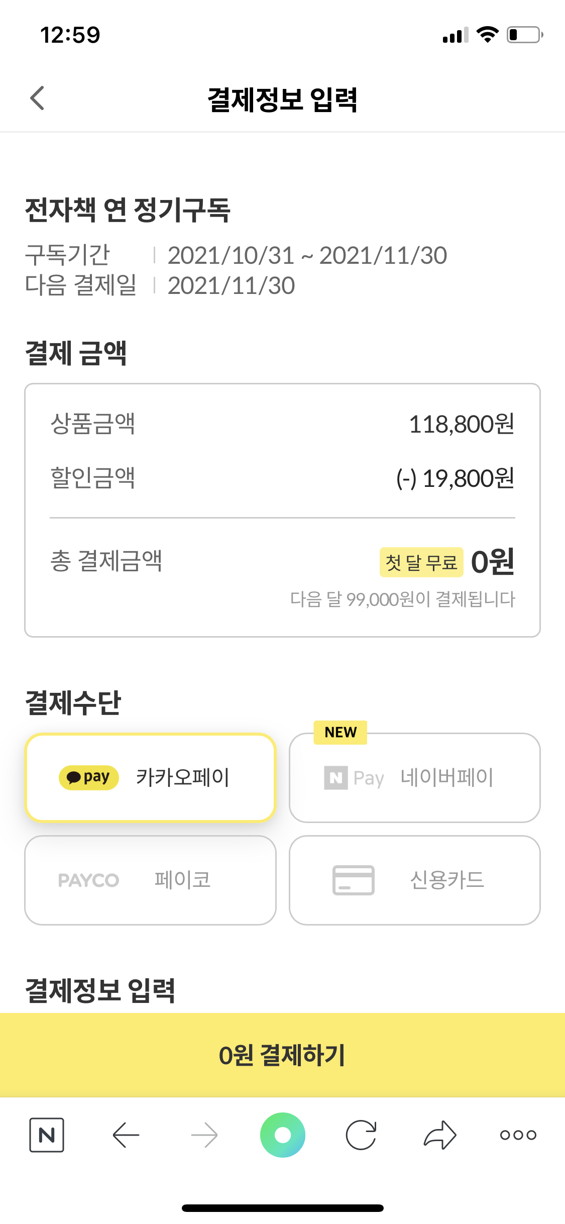 앞으로 쭈욱 이용할 생각이라 고민 없이 1년 치로 구매했어요. 카카오페이... 한국에선 정말 보편화되어 있다죠? 저는 써본 적이 없어서^^;;; 신용카드로 그냥 결제했어요. 생각해보니까 네이버 페이 충전하면 포인트 같은 거 있지 않나요? 네이버 페이로 결제할걸 그랬나...? 싶지만 그런 모든 과정이 다 귀찮으니 해외거주자에겐 그냥 바로 결제할 수 있는 신용카드가 최고인 것 같네요.