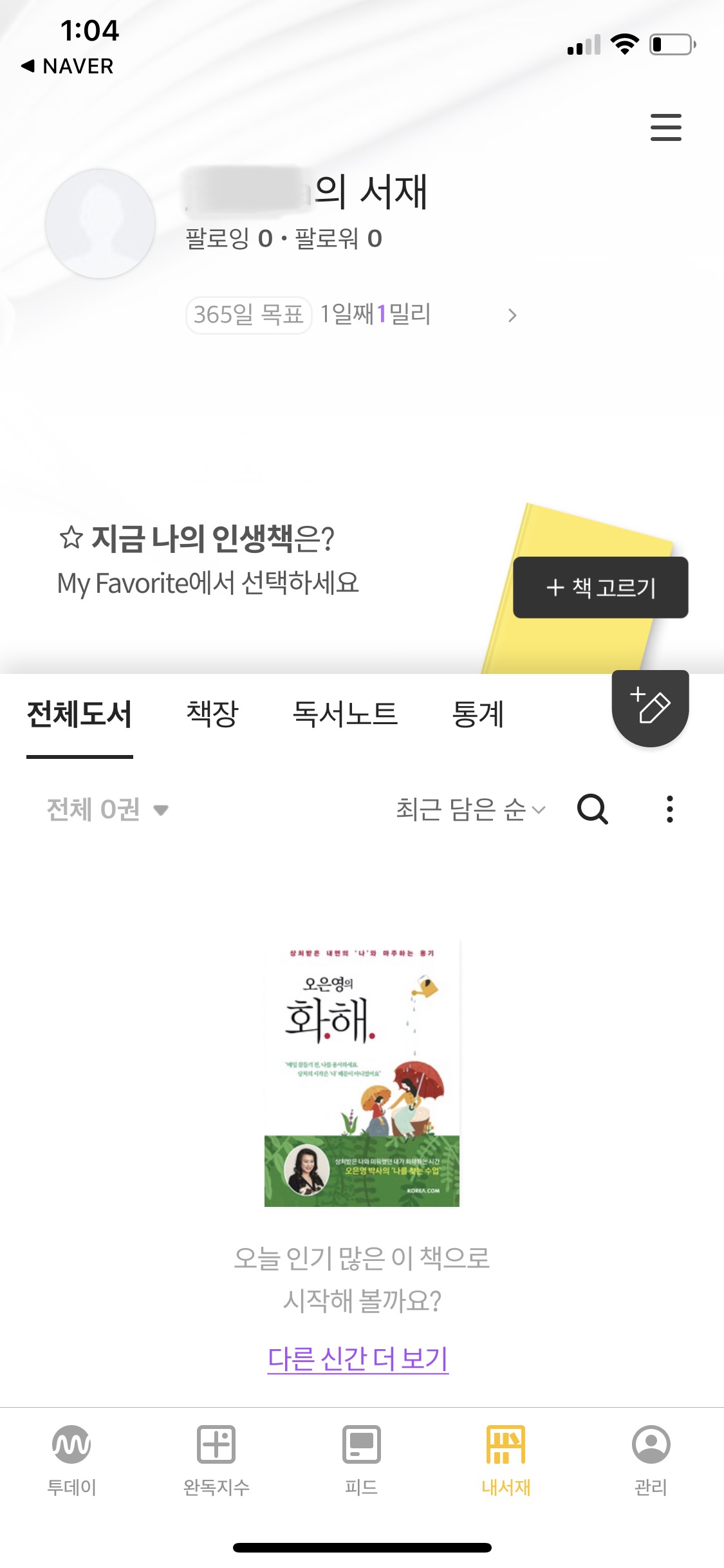 나만의 독서 목표!! 도 세울 수 있고, 책 추천도 뜨고, 서재며, 팔로잉 & 팔로워 기능도 있더라구요? 이제 도서관 가서 책 빌리던 시대는 끝나가나요...? 그래도 저는 아직 영어로 쓰인 책은 종이책으로 보는 게 좋아서 (읽는 속도도 느리고 눈도 덜 아파서) 계속 헌책방에서 사서 볼 거지만...