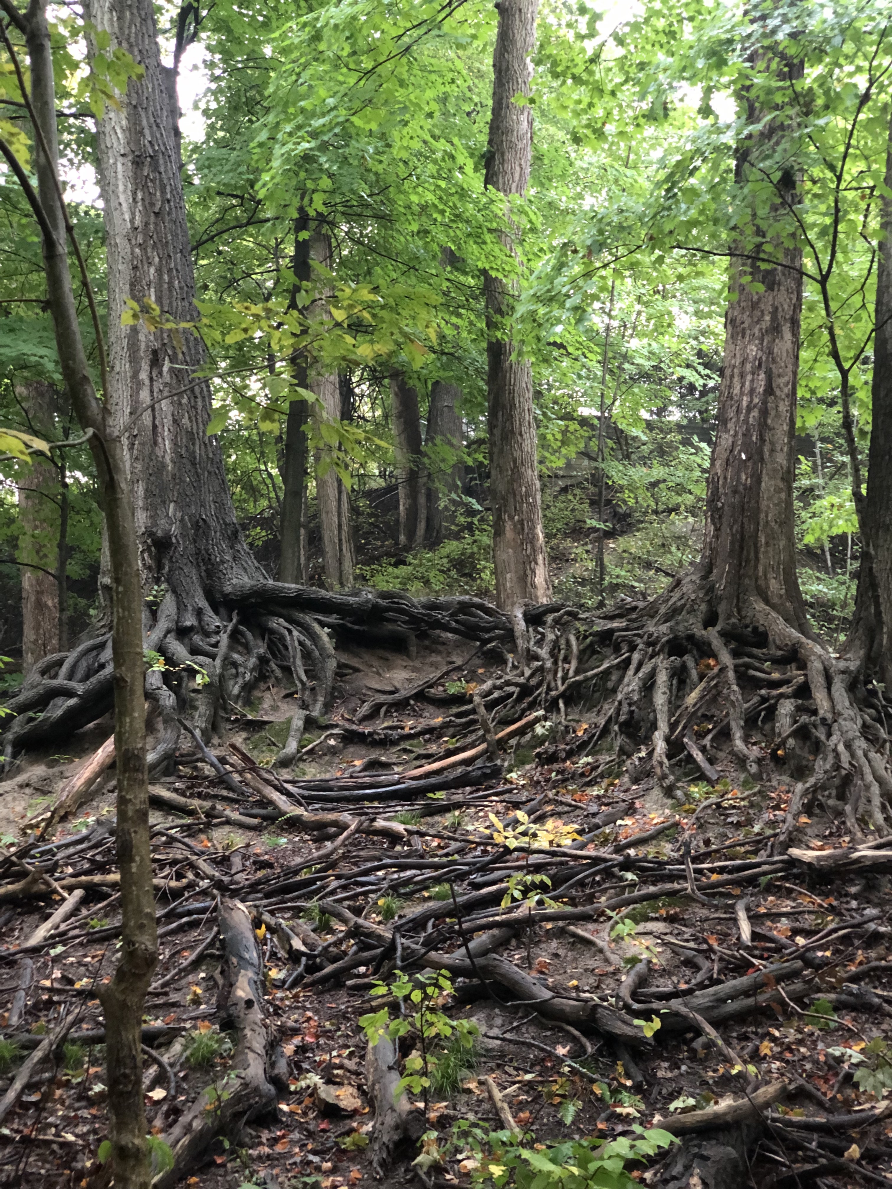 이렇게 언제 쓰러질지 모르는 뿌리가 다 드러난 나무 두개가 나란히 있어서 갈 때마다 아직 잘 있나 확인해보곤 하는데, 몇 년째 이 상태로 잘 서있네요. 이 나무들이 언젠가 쓰러지고 나면 뭔가 너무 허전할 것 같아요.